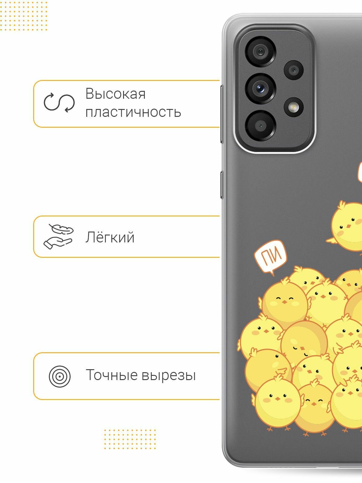 СохранитьСиликоновый чехол на Samsung Galaxy A73 5G, Самсунг А73 5Г с 3D принтом "Pi-pi-pi" прозрачный интересное: