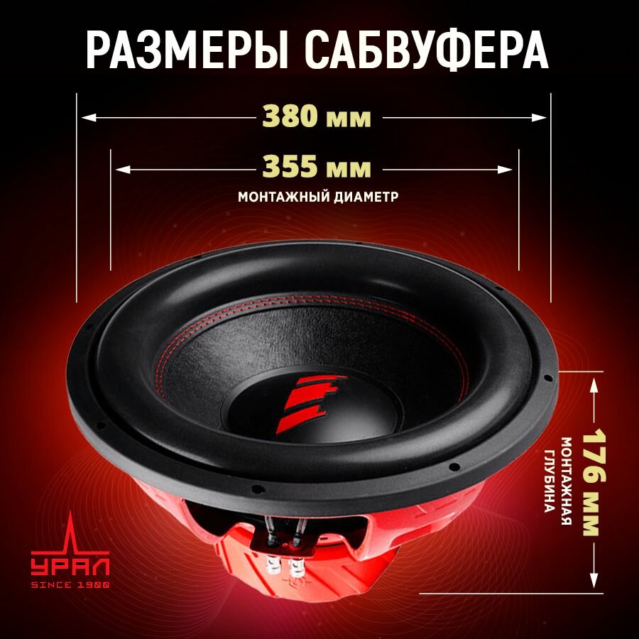 Сабвуфер URAL сабвуфер ТТ 15 39 см, 1100 Вт, черный/красный