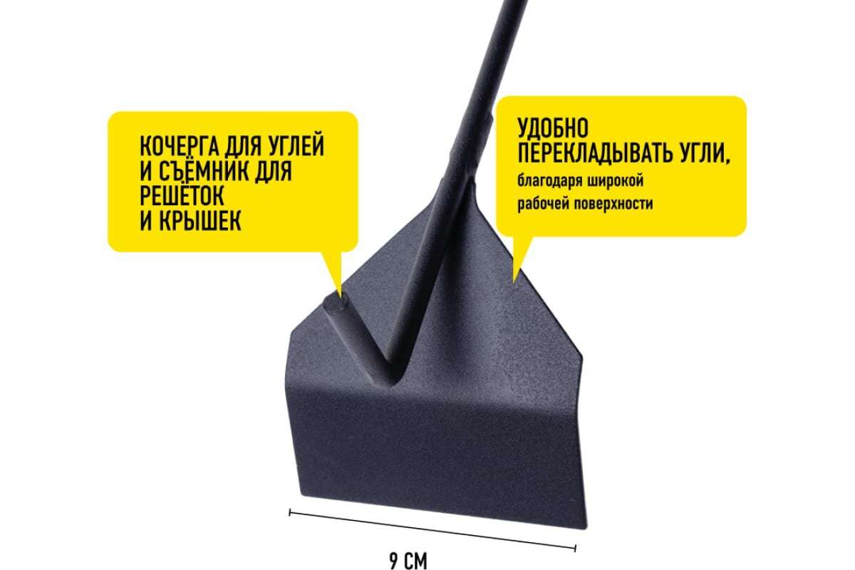 | Плюсы: | Два в одном: удобно перемещать уголь в мангале |