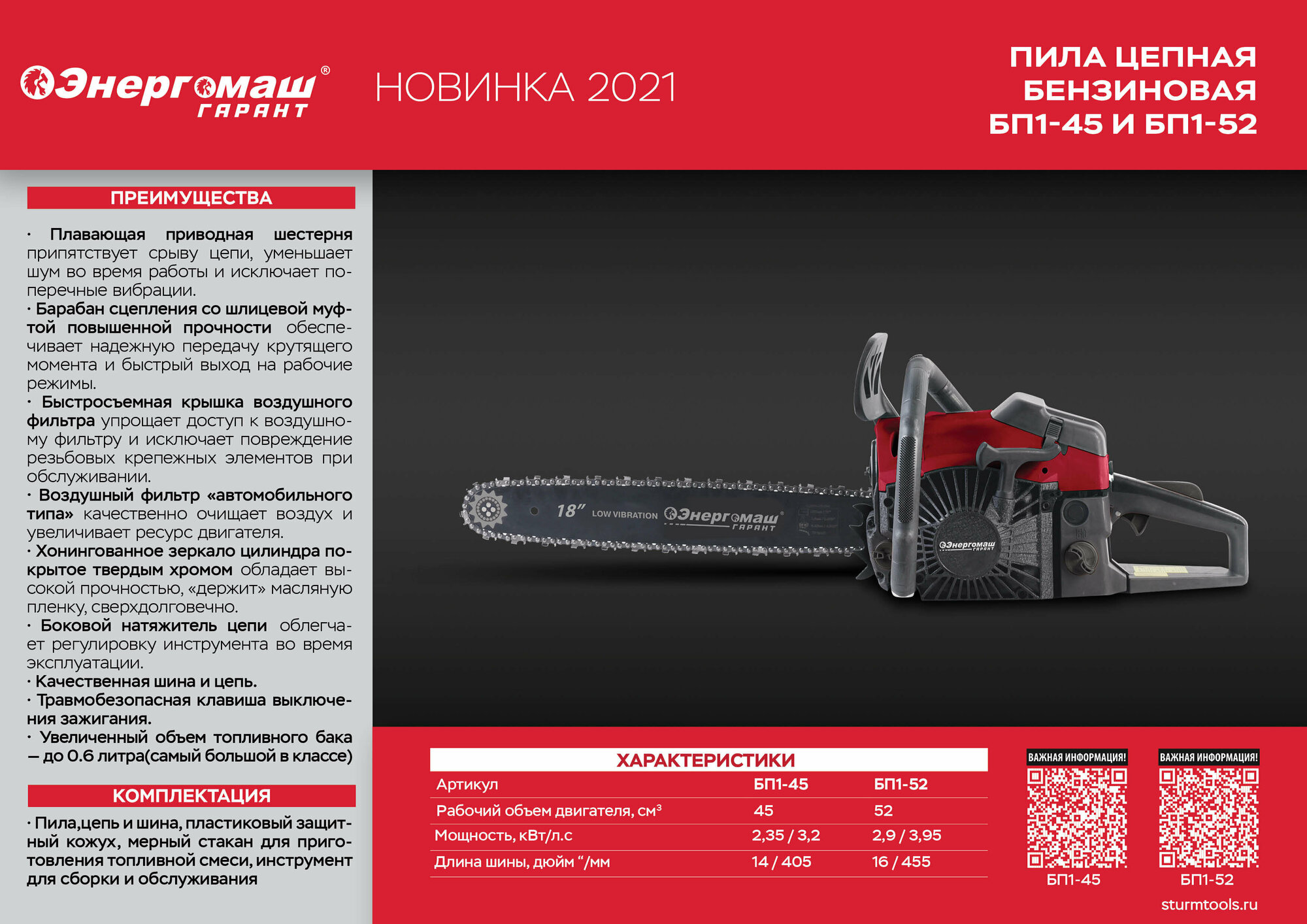 Бензопила Энергомаш гарант 2.4 кВт БП1-45 интересное: