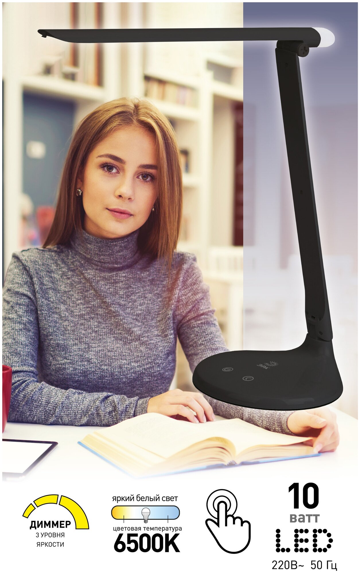 Купить Лампа настольная светодиодная офисная ЭРА NLED-482-10W-BK с регулировкой яркости