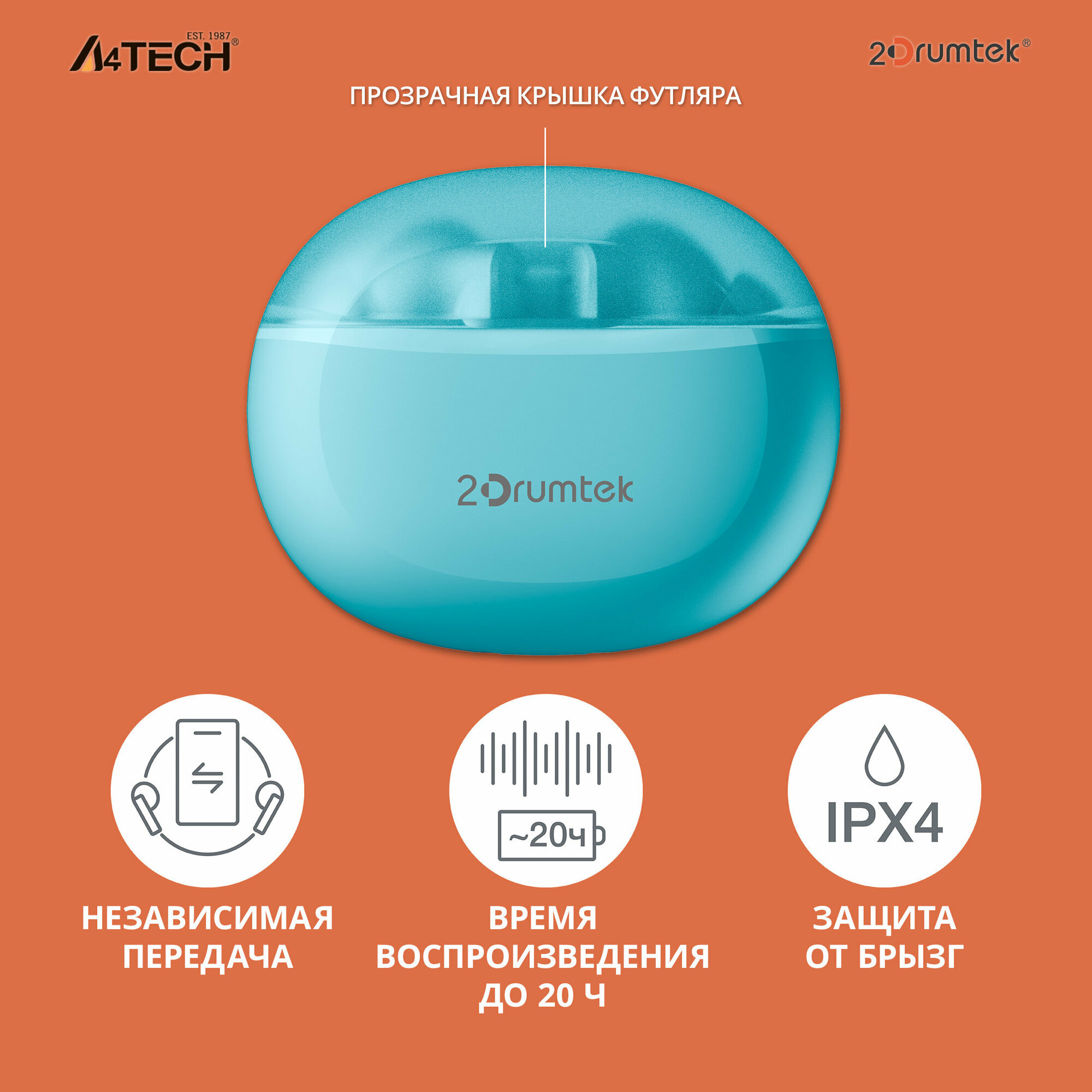 Гарнитура вкладыши A4Tech 2Drumtek B25 TWS синий беспроводные bluetooth (B25 ICY BLUE) интересное: