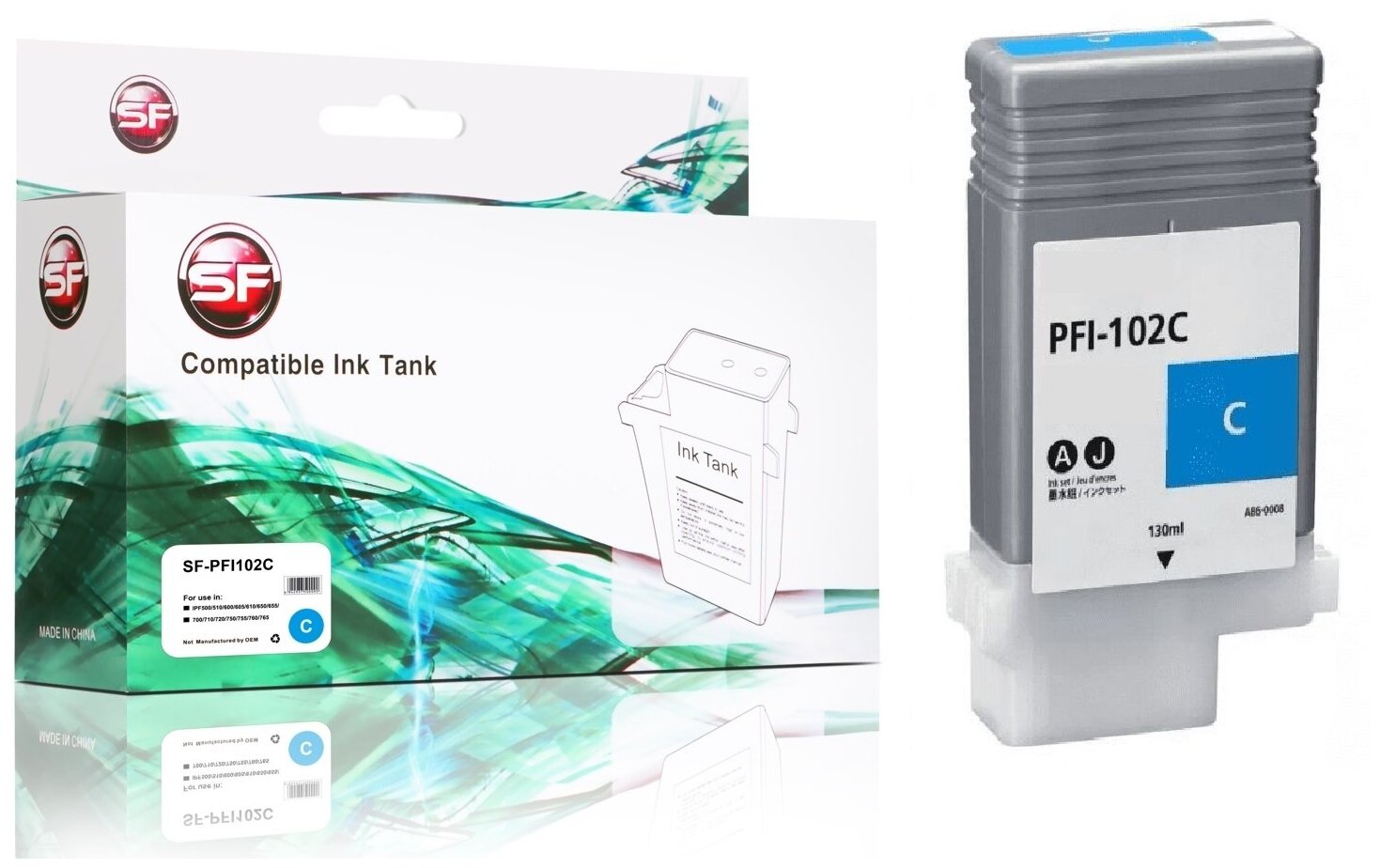 Картридж SuperFine SF-PFI102C для Canon PFI-102C IPF500/510/600/605/610/650/655/700/710/720/750/755/760/765 Cyan