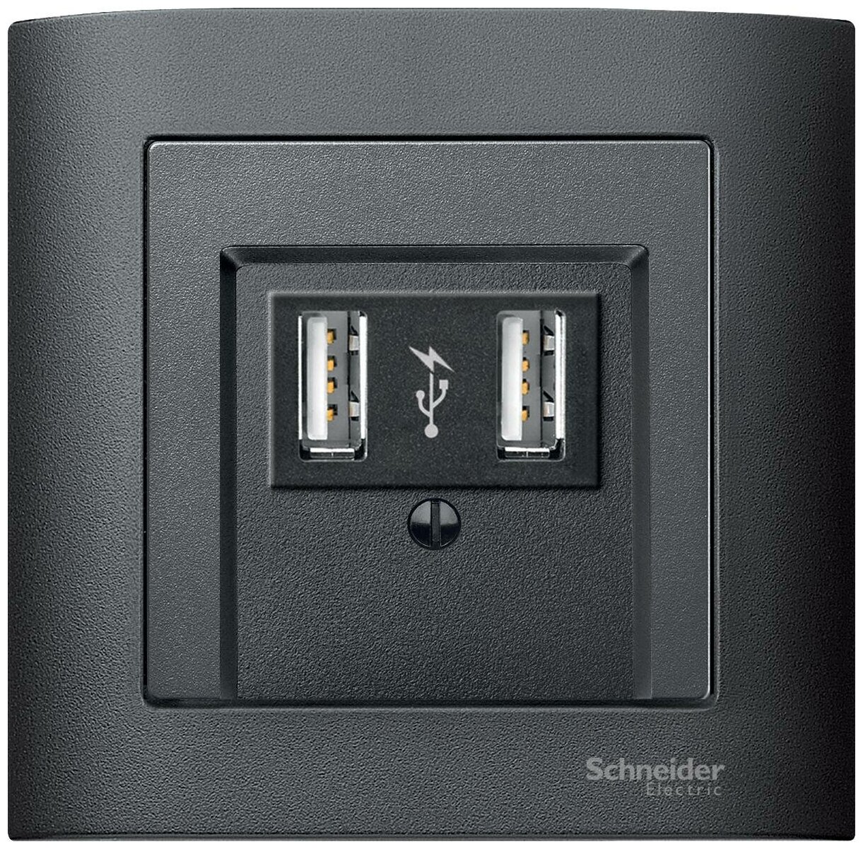 MTN297914 Накладка на розетку USB Schneider Electric Merten System M скрытый монтаж, антрацит