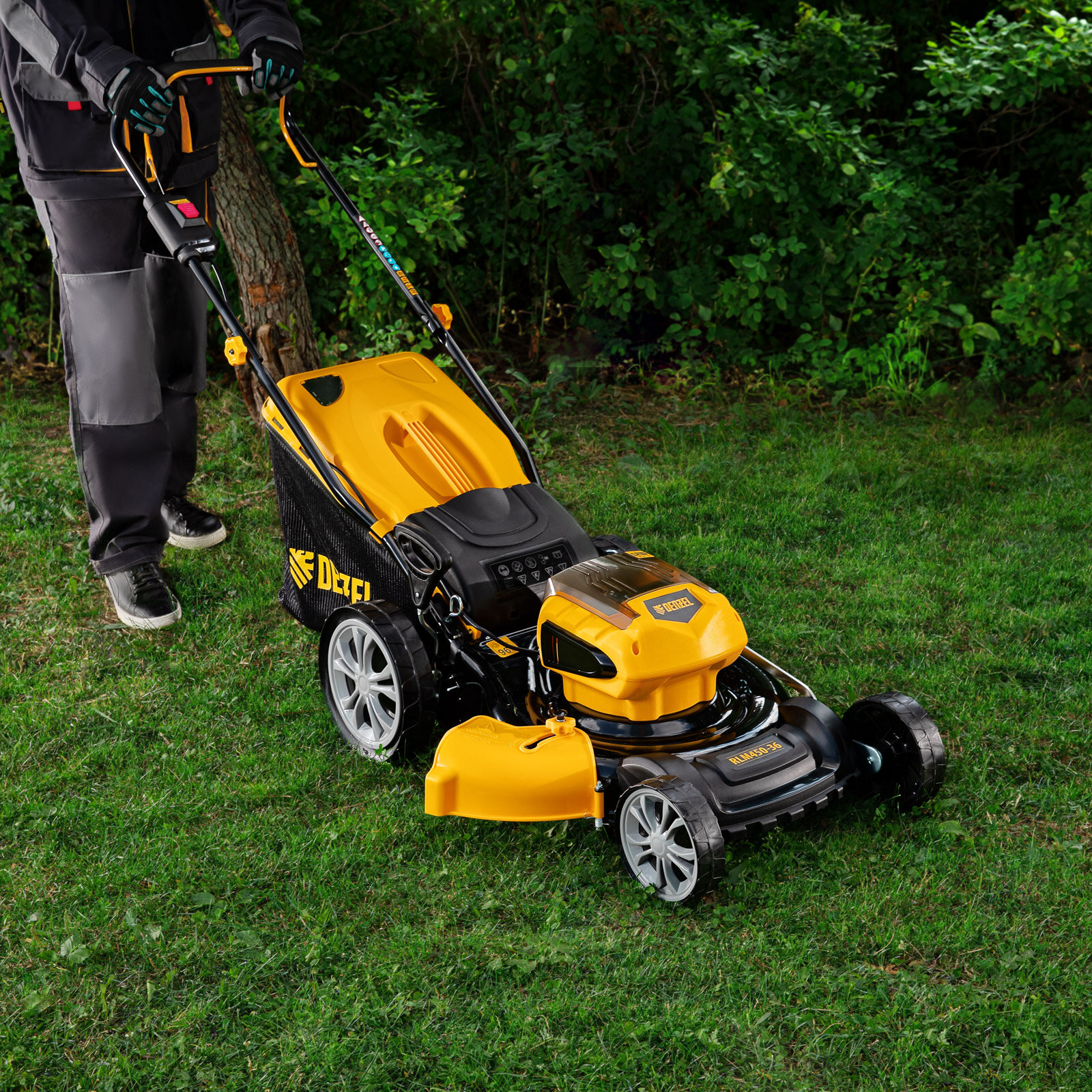 Газонокосилка аккумуляторная бесщеточная, 36 В, 4 Ач, 450 мм, травосборник 40 л, Denzel