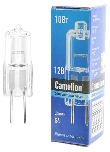 Лампа галогенная G4 Camelion JC 12В 10Вт капсульная прозрачная арт.2167