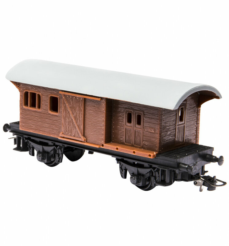 | Дополнительная информация | паровоз, вагон-хоппер,2 открытых грузовых вагона, закрытый грузовой вагон, ландшафт с тоннелем, домами и постройками, растениями; ландшафт размером 125 х 100 см; размер собранного железнодорожного полотна: 117,5 x 95,5 см; возможность изменения скорости движения; |