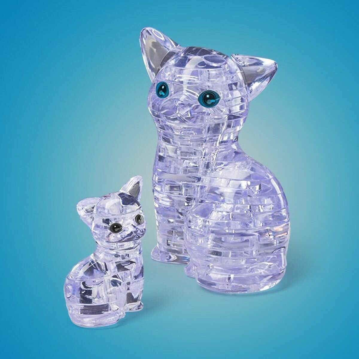 3D-пазл Crystal Puzzle IQ игра для детей кристальная серебристая Кошка с котенком 49 деталей