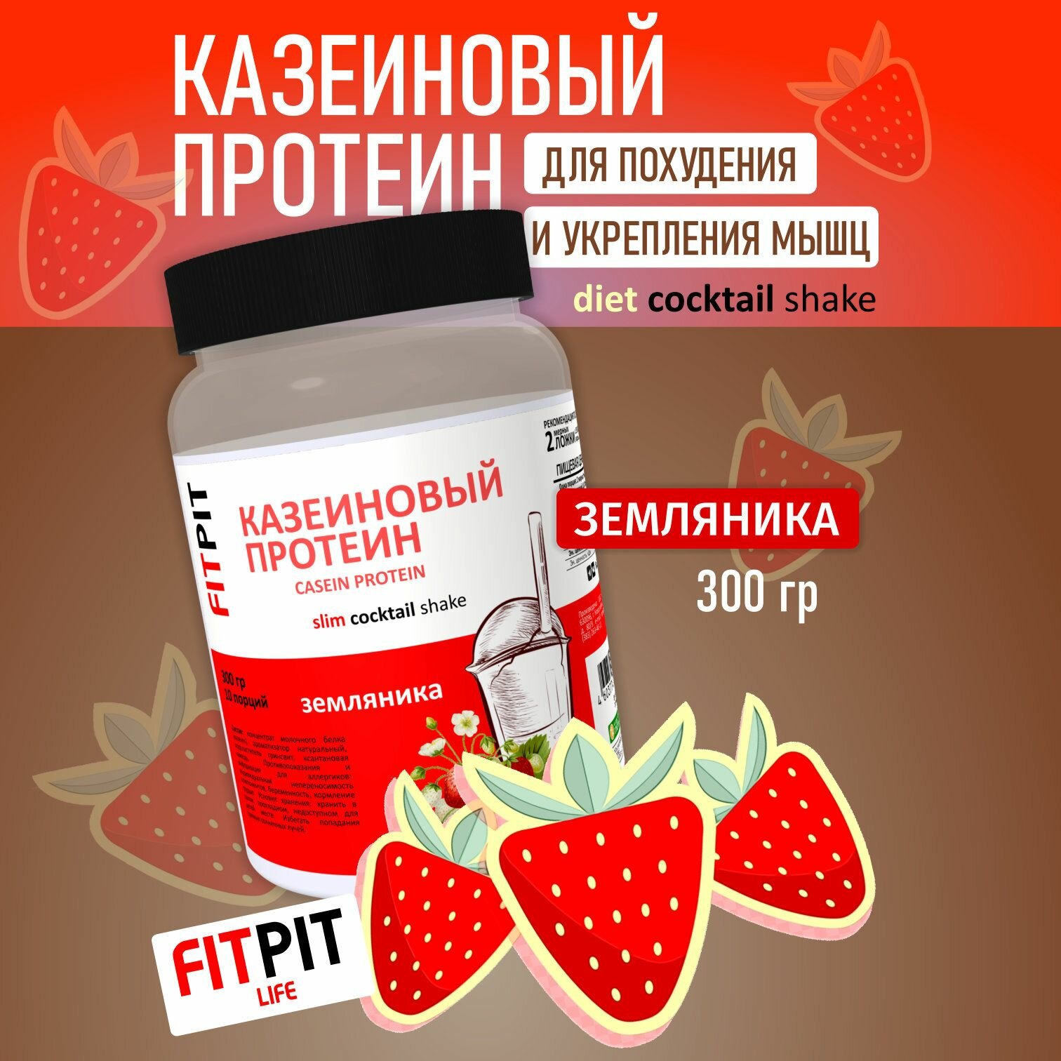 Купить FITPIT Казеиновый протеин (Казеин) (Концентрат молочного белка) 300 гр Земляника Для похудения и укрепления мышц