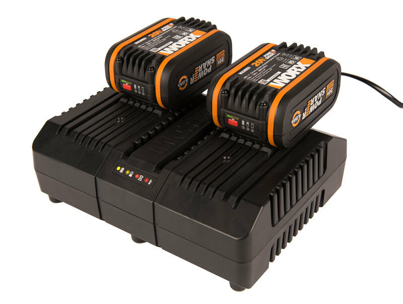 Комплект WORX WA3611 20V: 2 аккумулятора 4Ач и двойное зарядное устройство 2А
