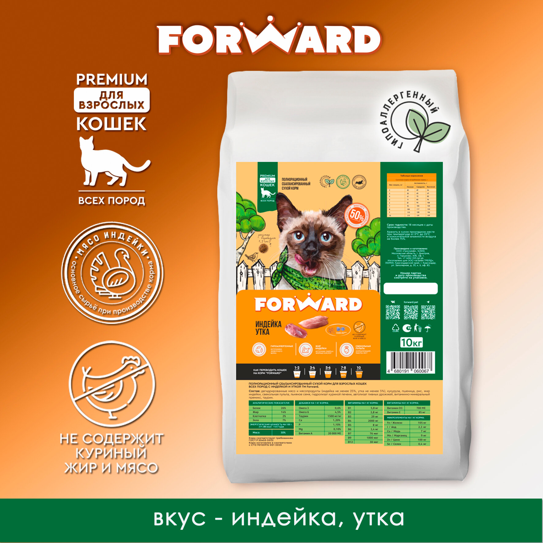 Ниже Вы можете прочитать отзывы на Сухой корм для кошек Forward с индейкой и уткой, 10 кг., ознакомится с подробными характеристиками, посмотреть интересные обзоры и фотографии на Сухой корм для кошек Forward с индейкой и уткой, 10 кг..