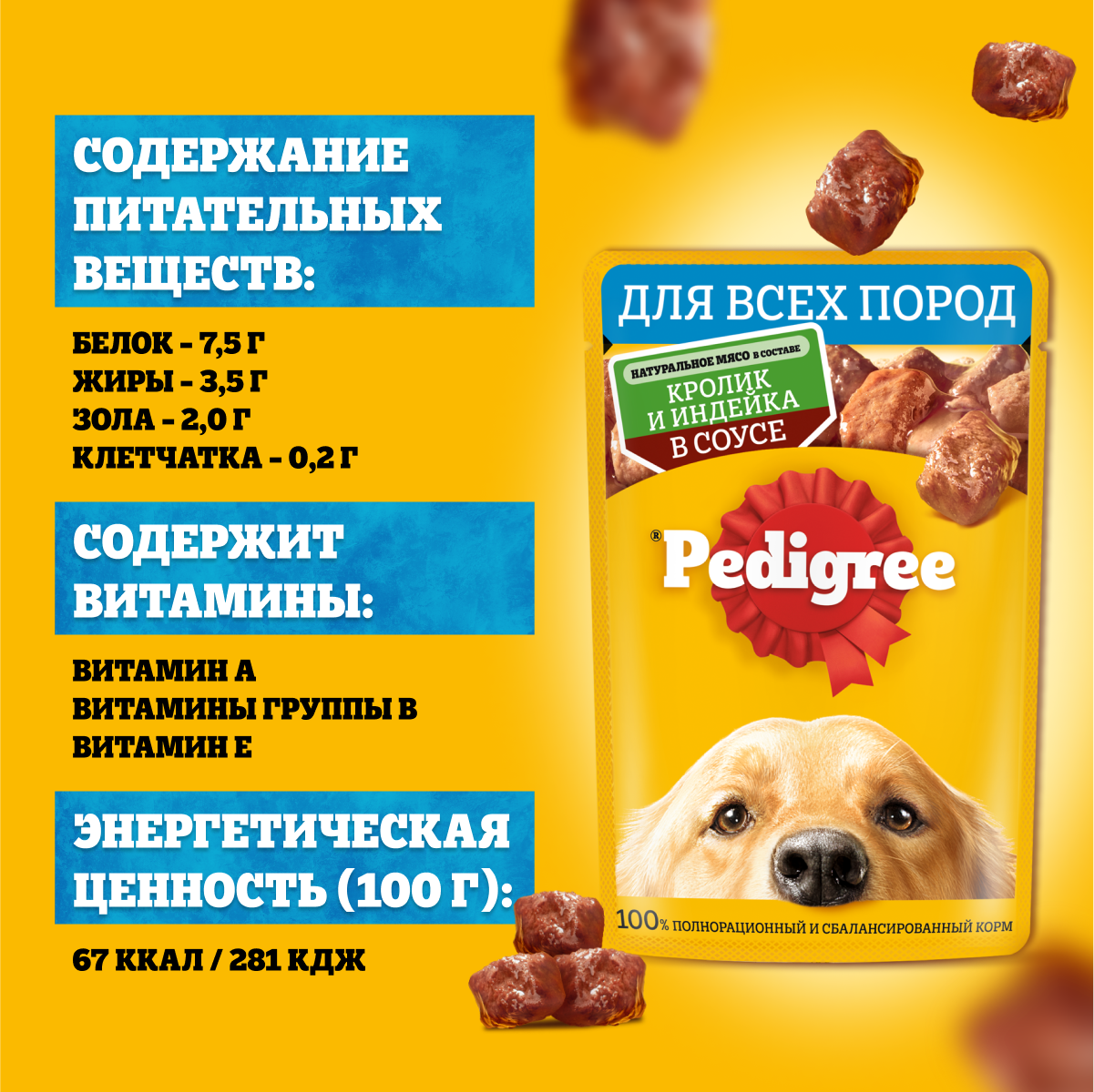 Pedigree Паучи для взрослых собак всех пород с кроликом и индейкой в соусе 85г 10222563 0,085 кг 43496 (26 шт)