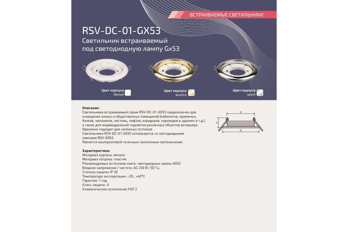 Встраиваемый светильник RSV белый RSV-DC-01-GX53 100386 интересное: