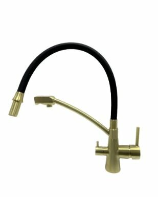 Смеситель для кухни с силиконовым изливом с выходом для питьевой воды А5179AW-13 Черный+Золото Accoona
