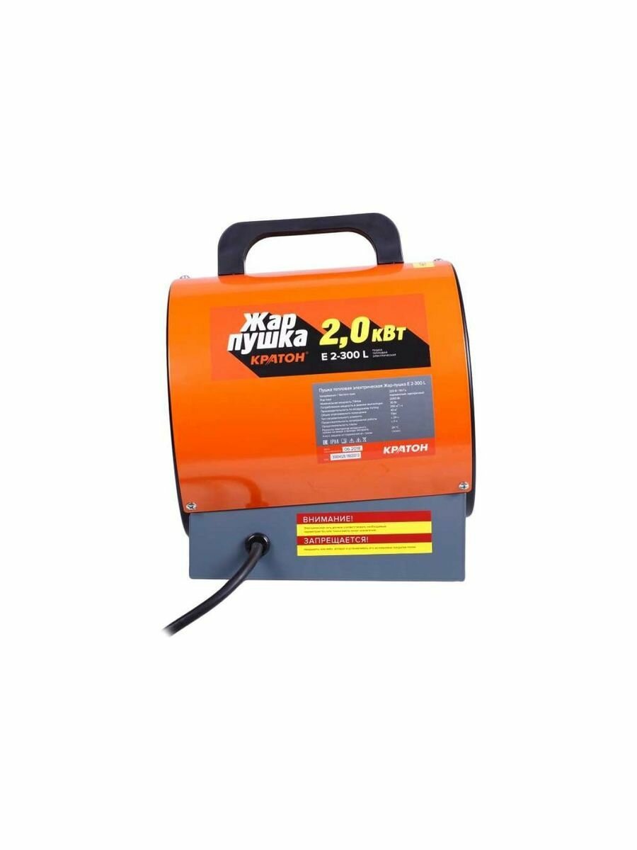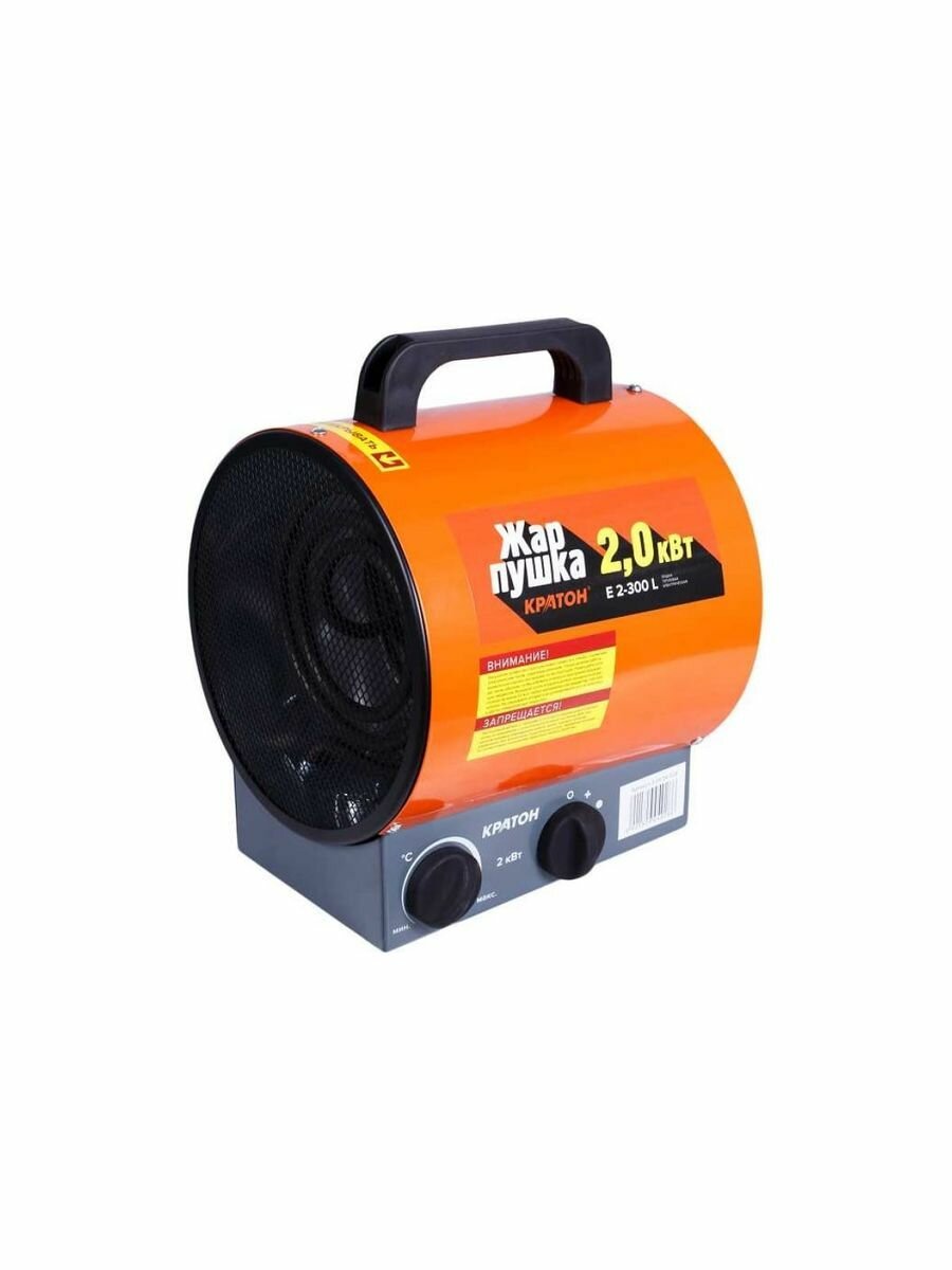 Пушка тепловая электрическая Кратон Жар-пушка Е 2-300 L (2 кВт, площадь обогрева 40 м3, термостат, нагревательный элемент - ТЭН, регулировка мощности) / тепловентилятор / для обогрева помещений
