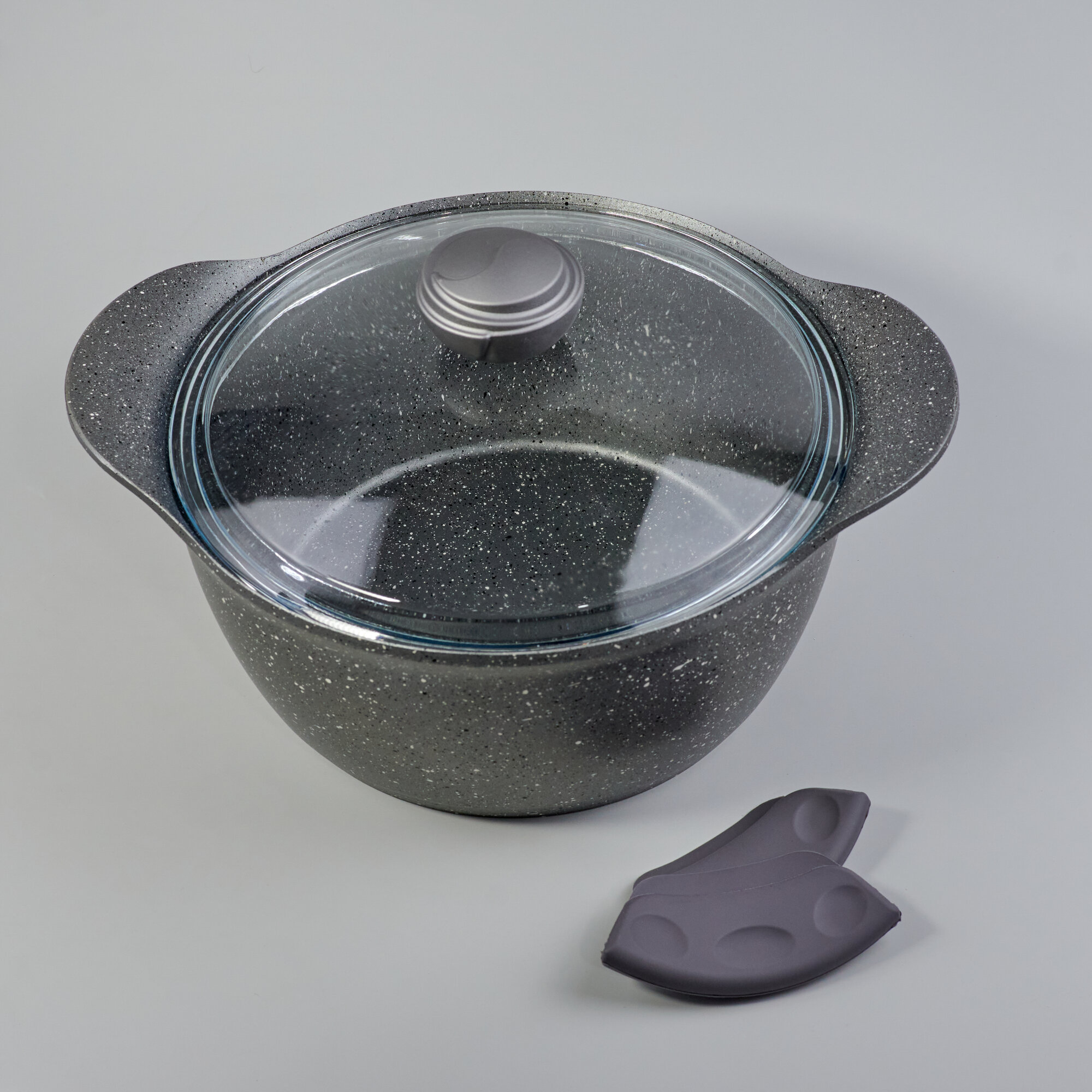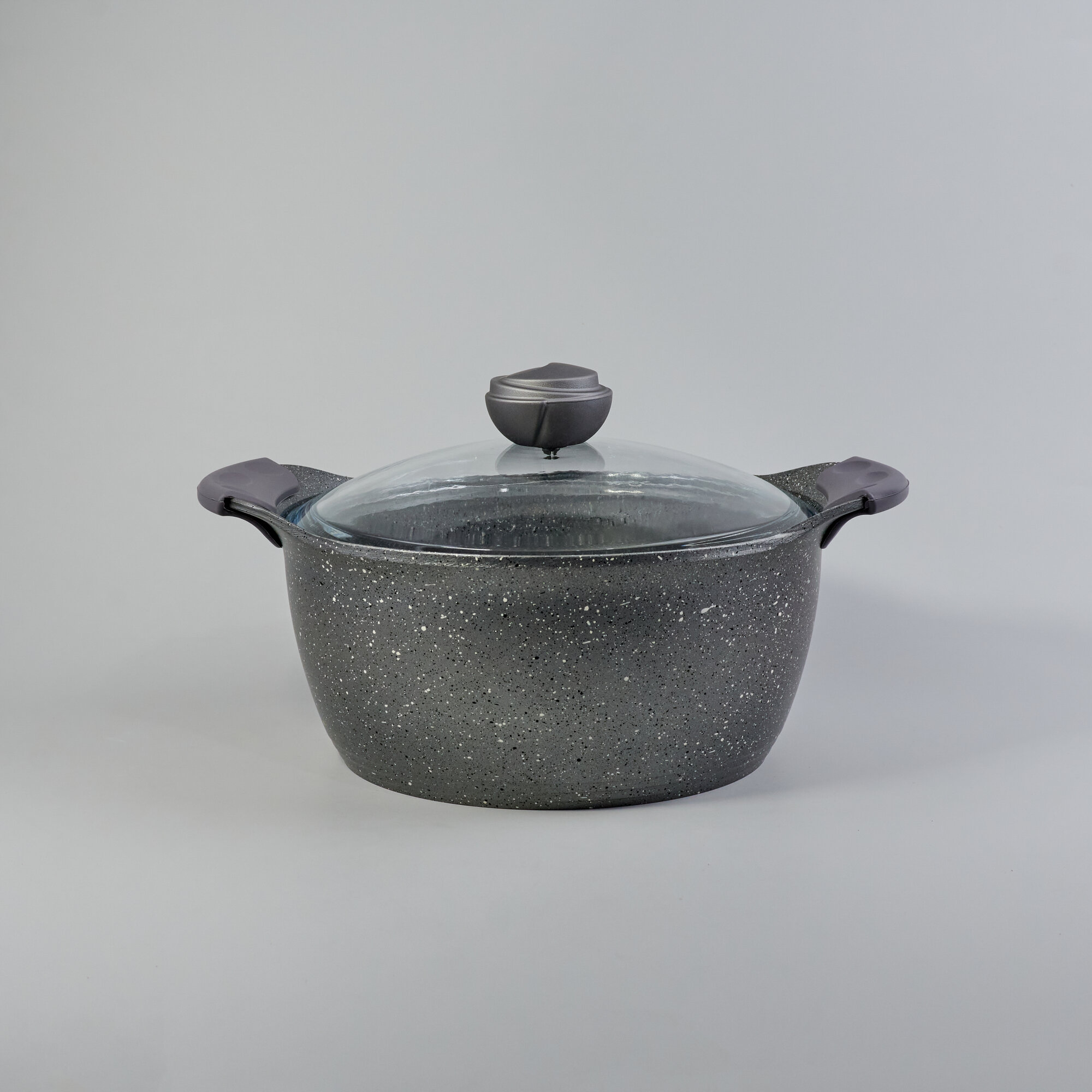 Купить Кастрюля с крышкой 4,5л 24 см. Антипригарное гранитное покрытие. Цвет: серый. O.M.S. Collection.