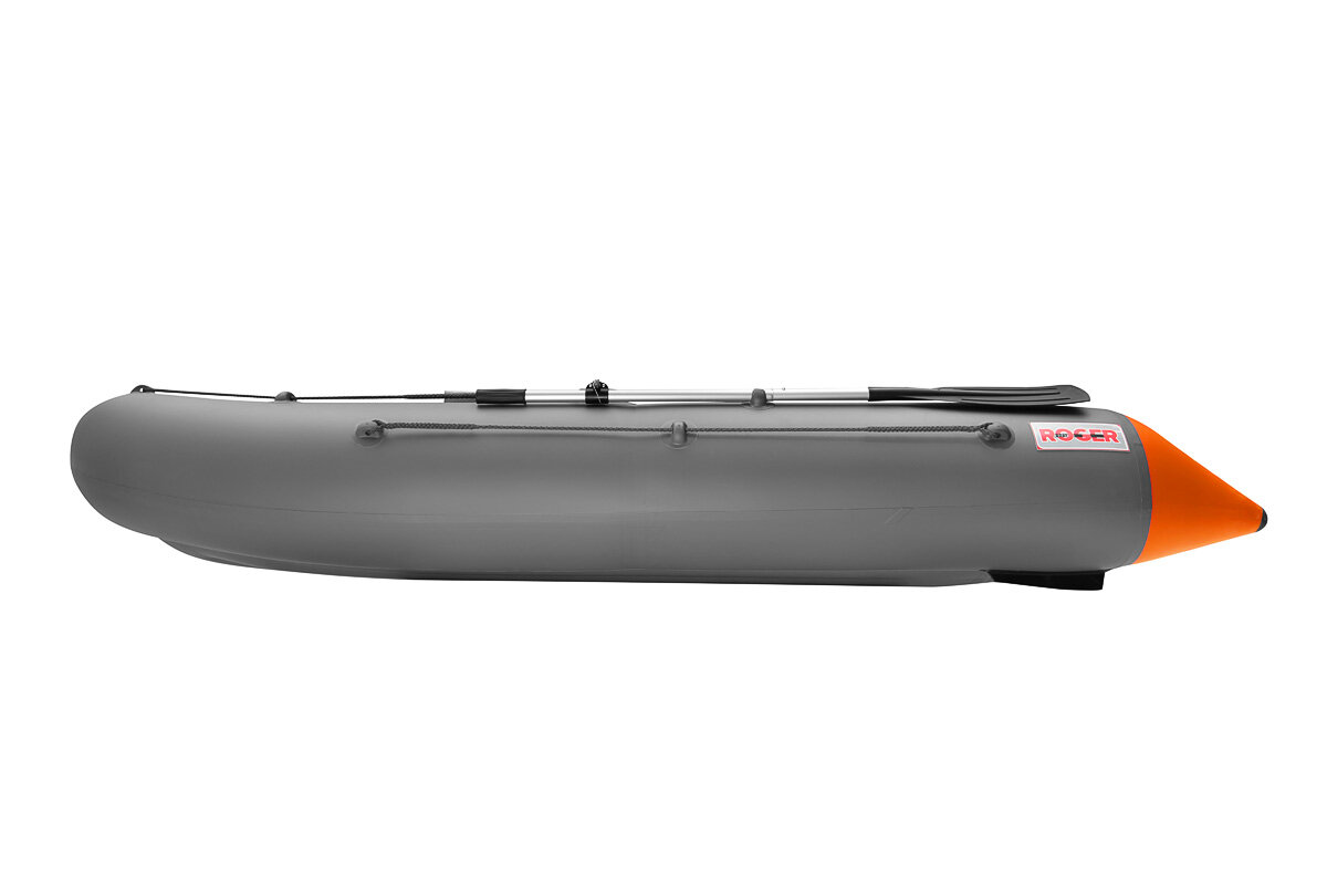 Лодка надувная ПВХ под мотор ROGER Trofey 2900, лодка Роджер НДНД (графит-оранжевый комби)