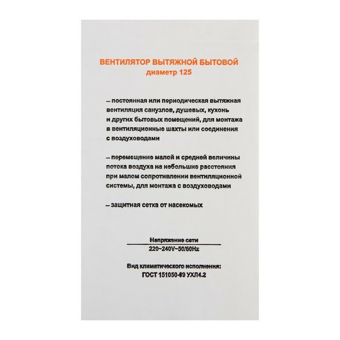 Вентилятор осевой / вытяжка в ванную / вытяжка в туалет d100 мм, белый