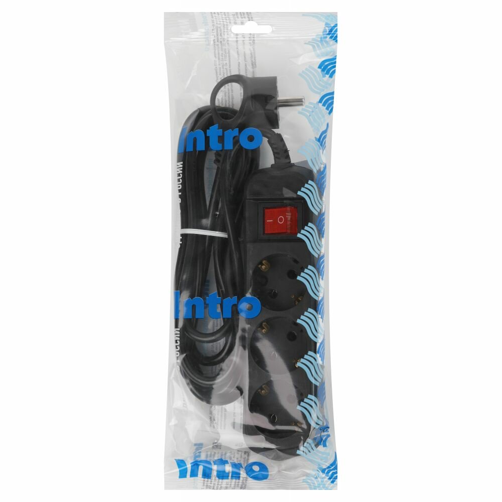 Купить Удлинитель Intro UES330-B сетевой электрический бытовой с заземлением с выключателем 3 розетки, 3 м, ПВС 3х0,75 мм2, 10А, черный