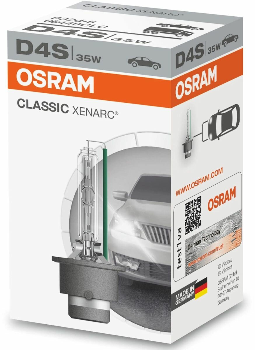 Ксеноновая лампа Osram D4S 35W Xenarc Classic 1шт., 66440CLC / QR код подлинности