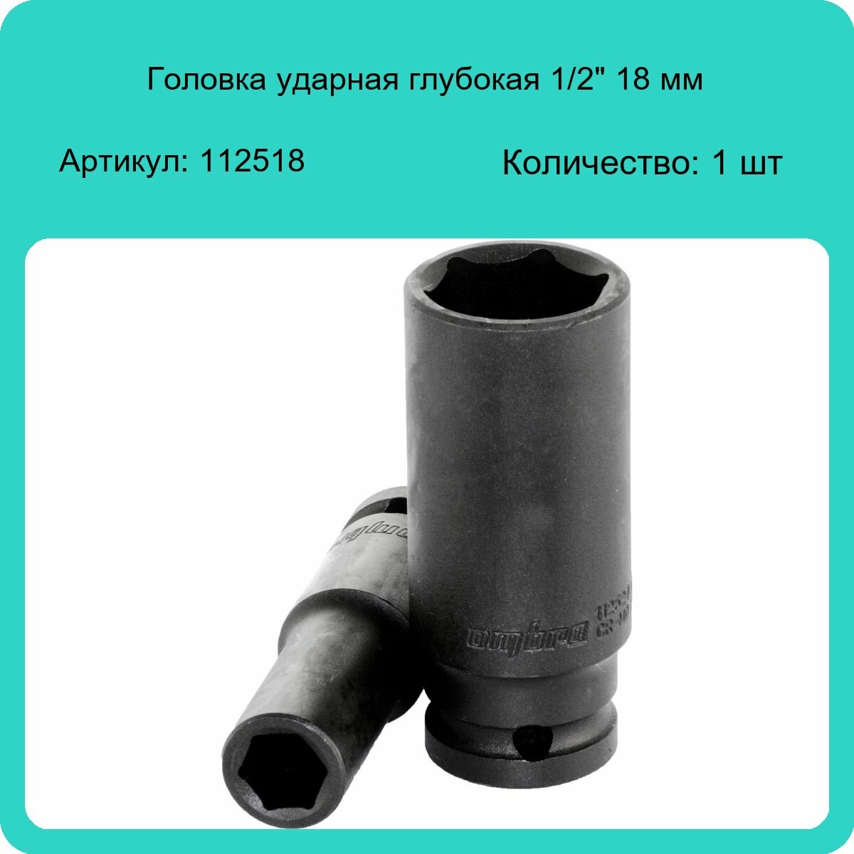112518 Головка торцевая ударная глубокая 1/2"DR, 18 мм