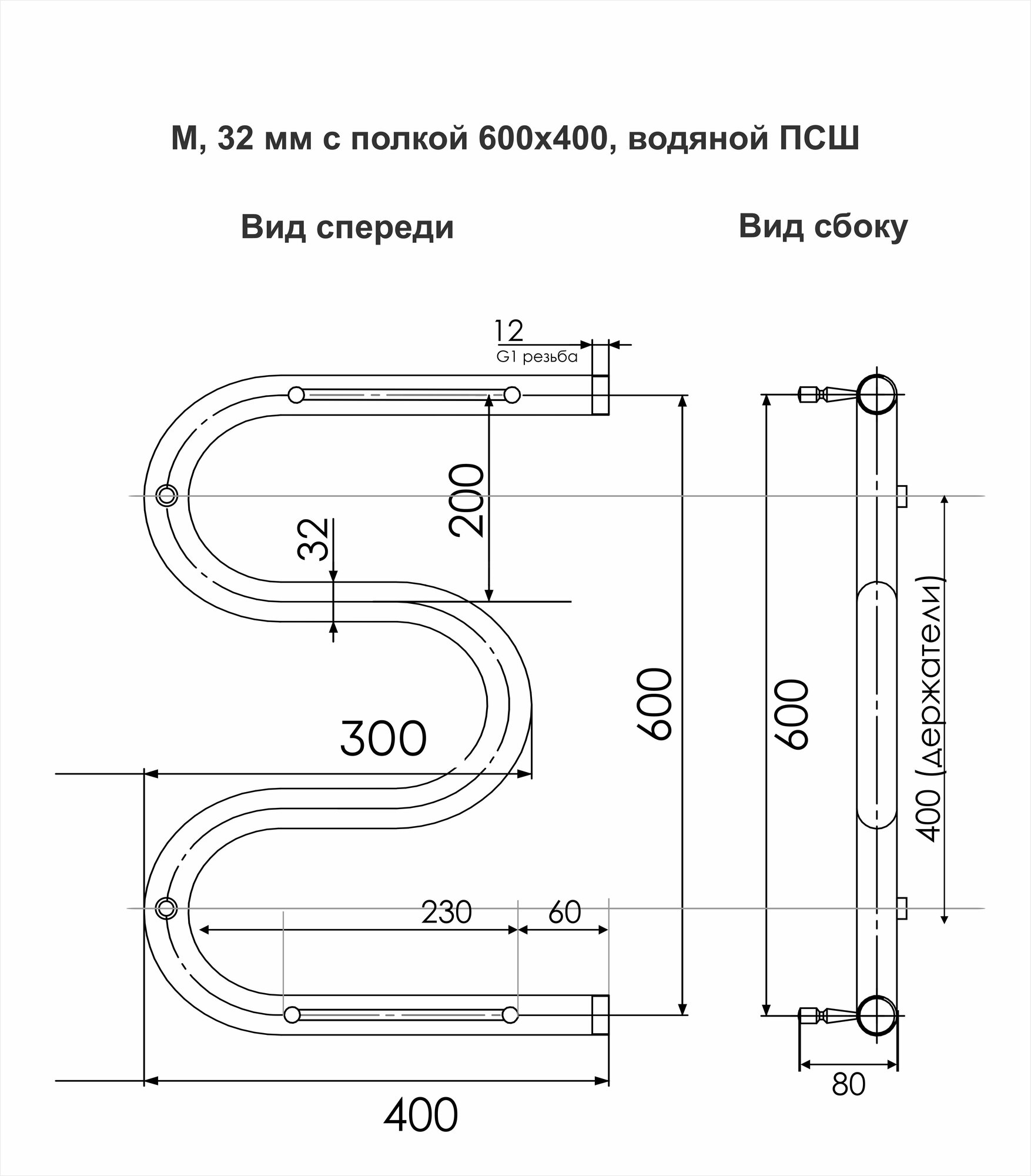 Полотенцесушитель M6 с полочкой (1") 60/40