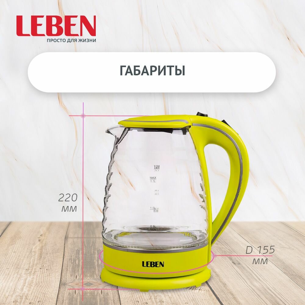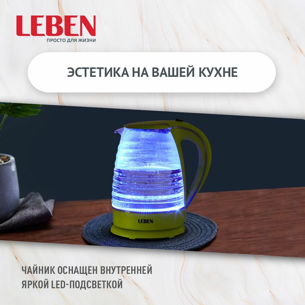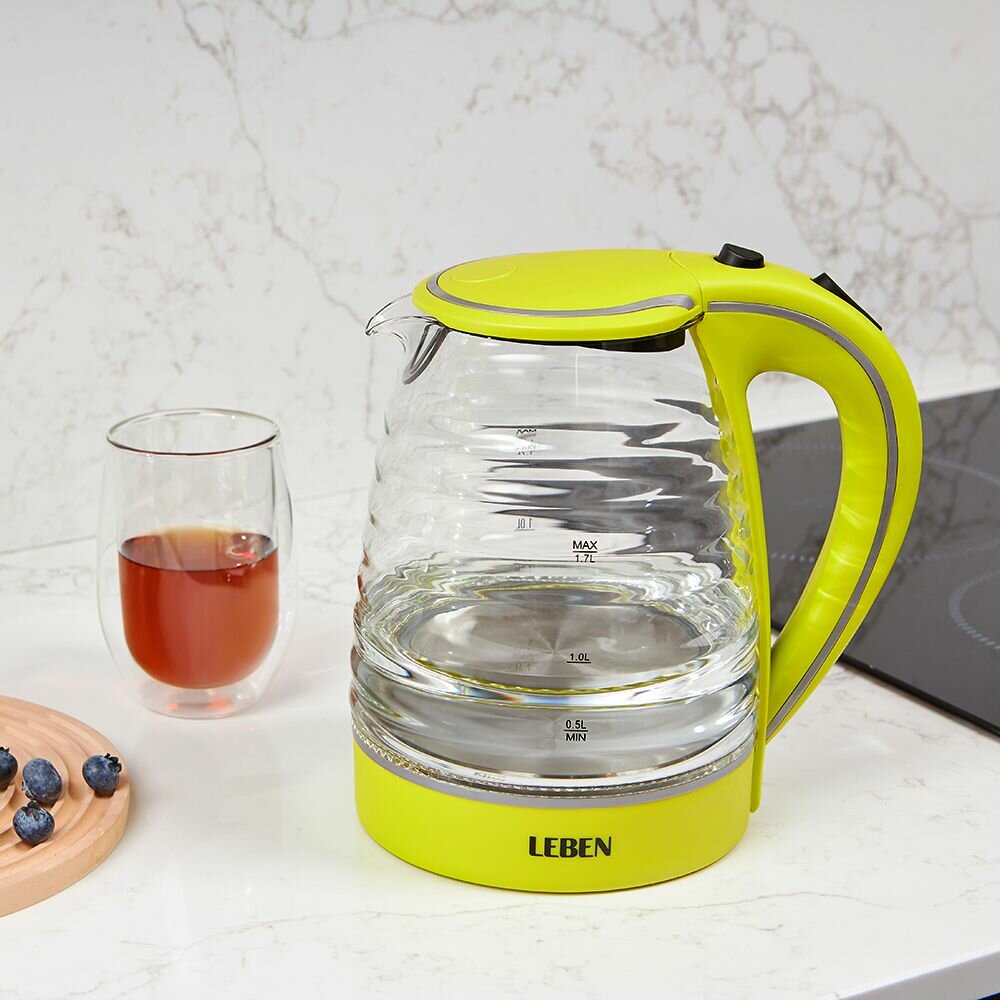 Чайник электрический 1,7л, 1850Вт, скрытый нагр.элемент, стекло, рифлёное стекло, LEBEN интересное: