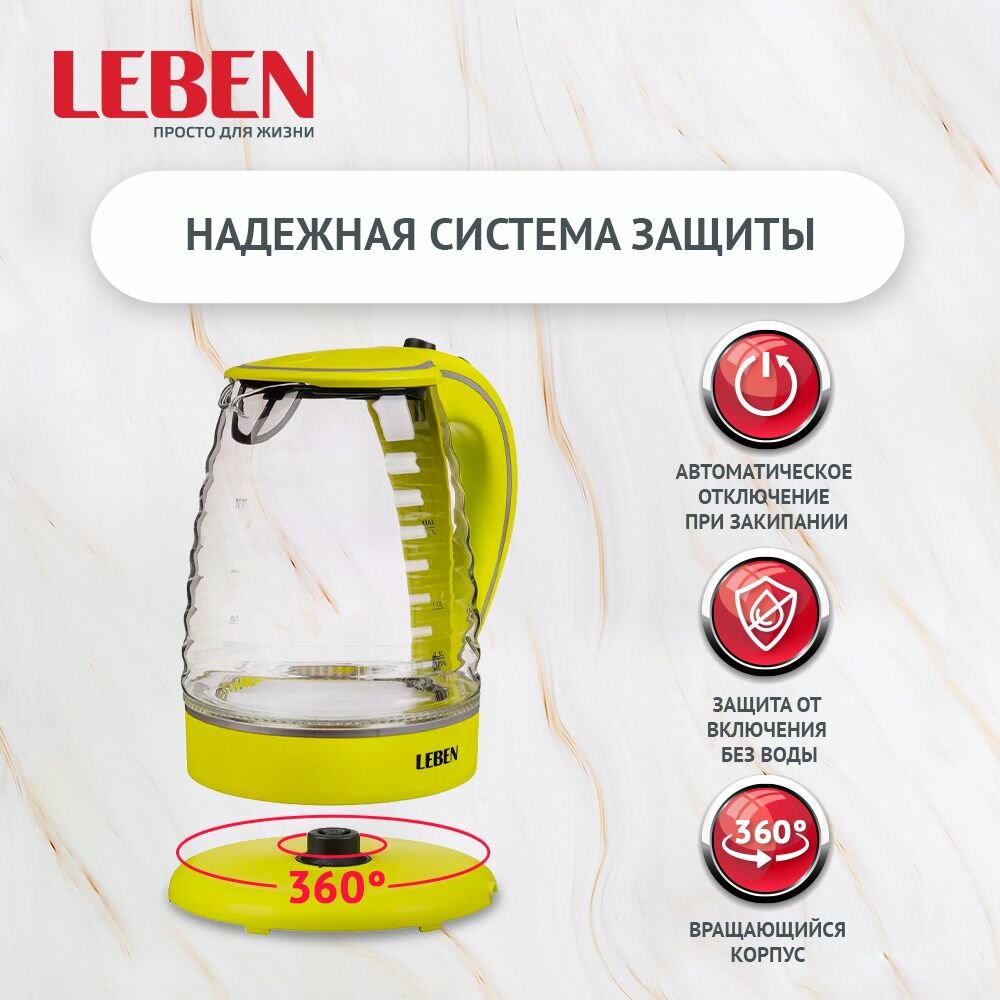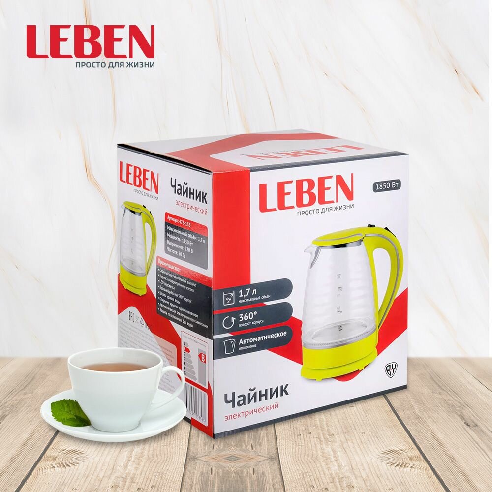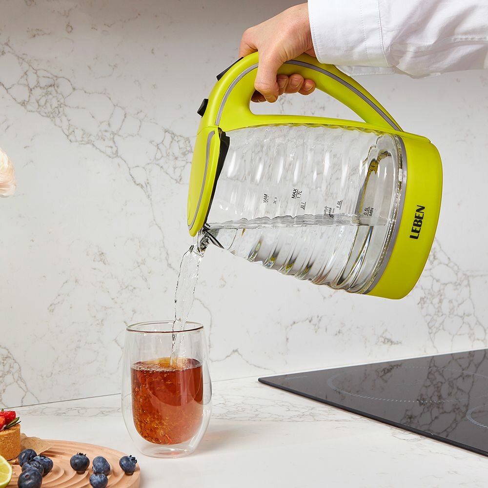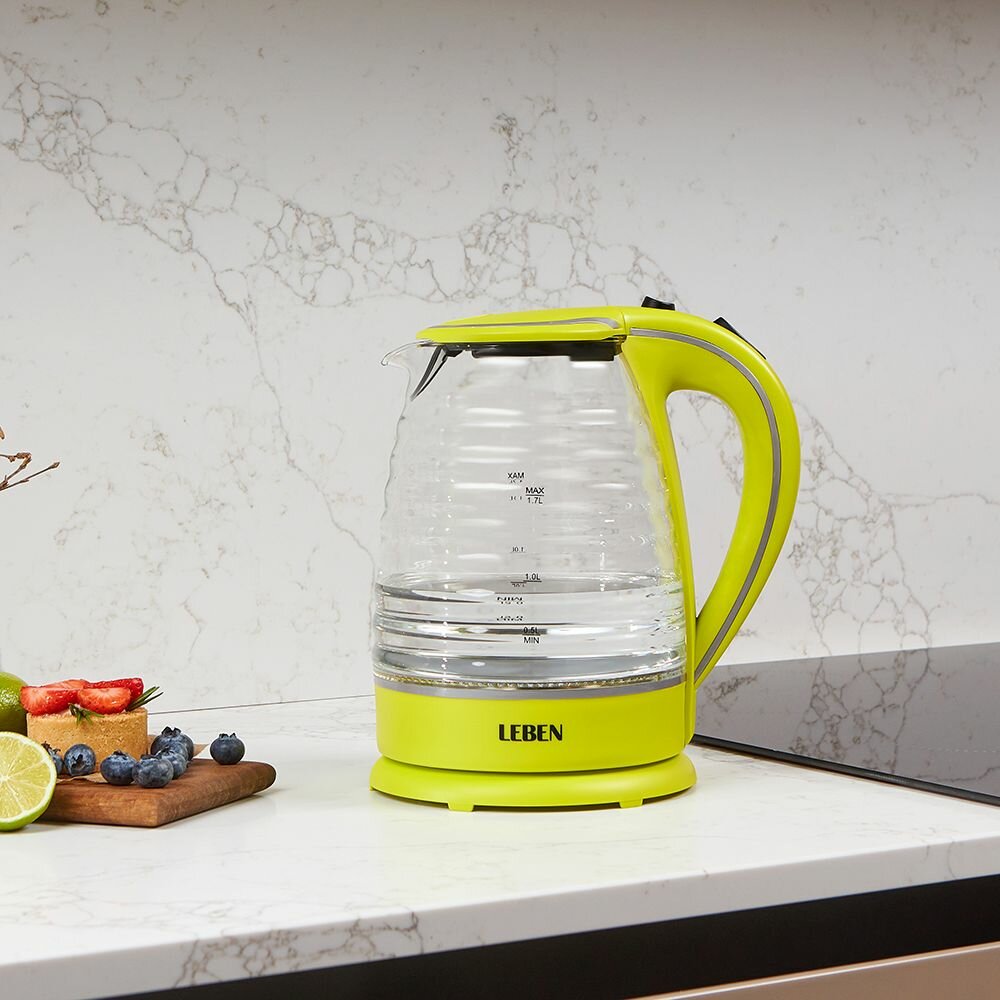 Чайник электрический 1,7л, 1850Вт, скрытый нагр.элемент, стекло, рифлёное стекло, LEBEN интересное: