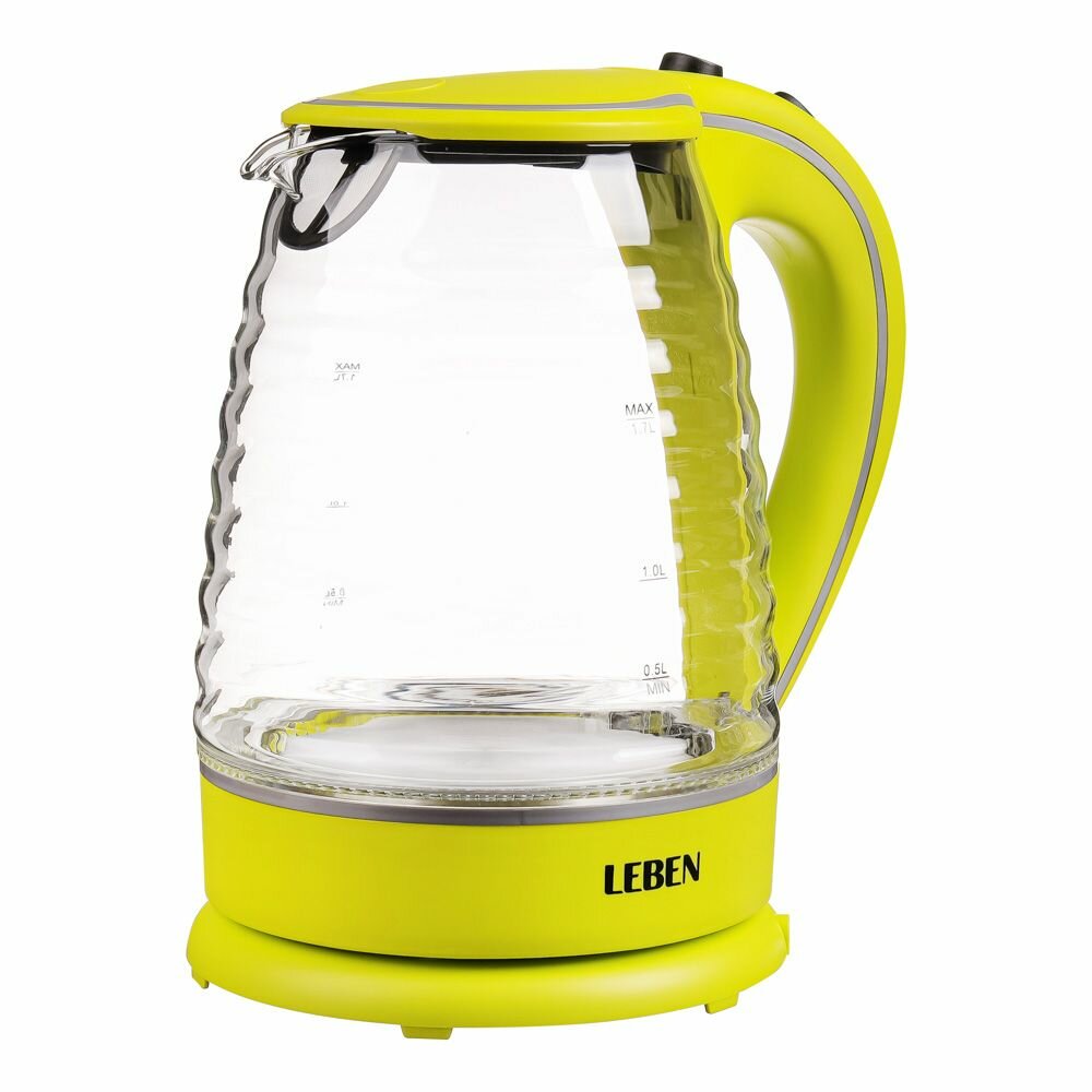 Купить Чайник электрический 1,7л, 1850Вт, скрытый нагр.элемент, стекло, рифлёное стекло, LEBEN