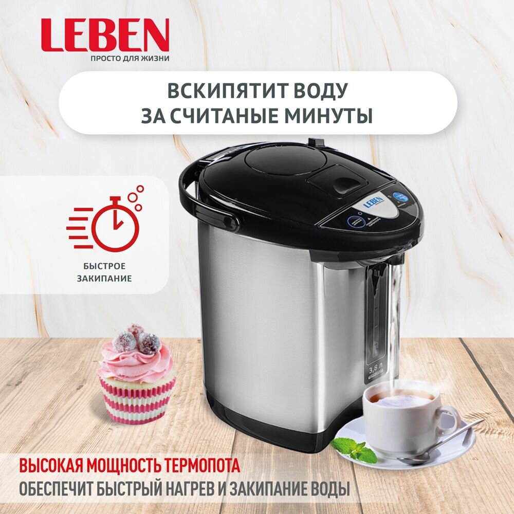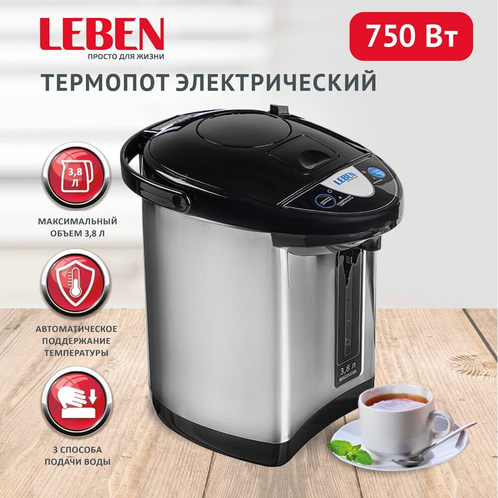 Термопот LEBEN 291-084 750 Вт, 3,8л, черный/серебристый интересное: