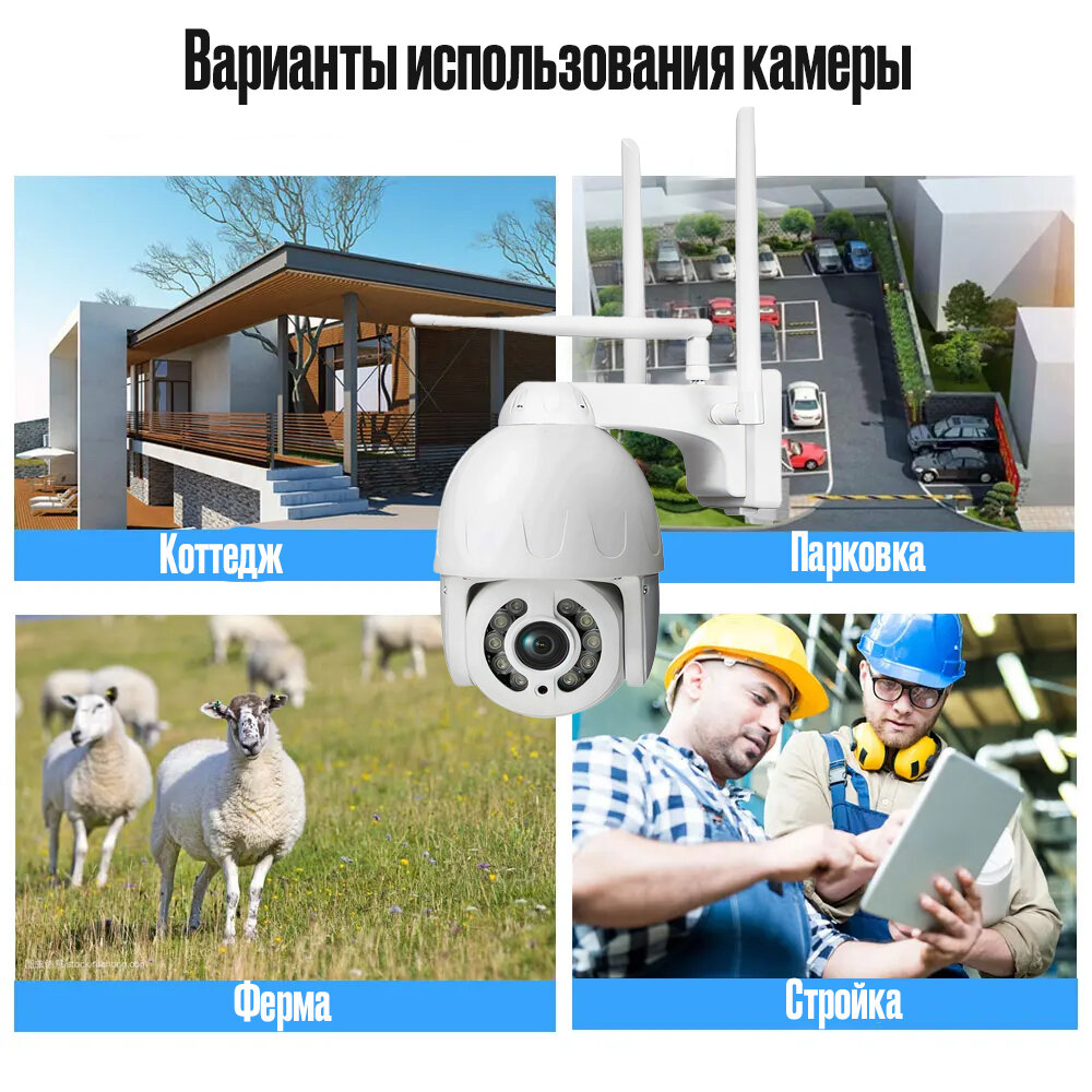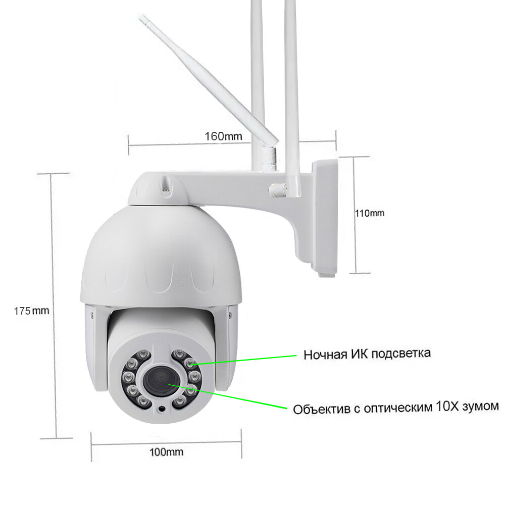 | Дополнительная информация | Функция PTZ, Поддержка 3G/4G соединения, Поддержка Wi-fi соединения, Оптический 10x zoom, Поддержка технологии P2P, Мощная ИК подсветка - до 60 м, Качественная оптика: реализована на 5mp матрице, Запись на карту памяти microSD до 128Гб |