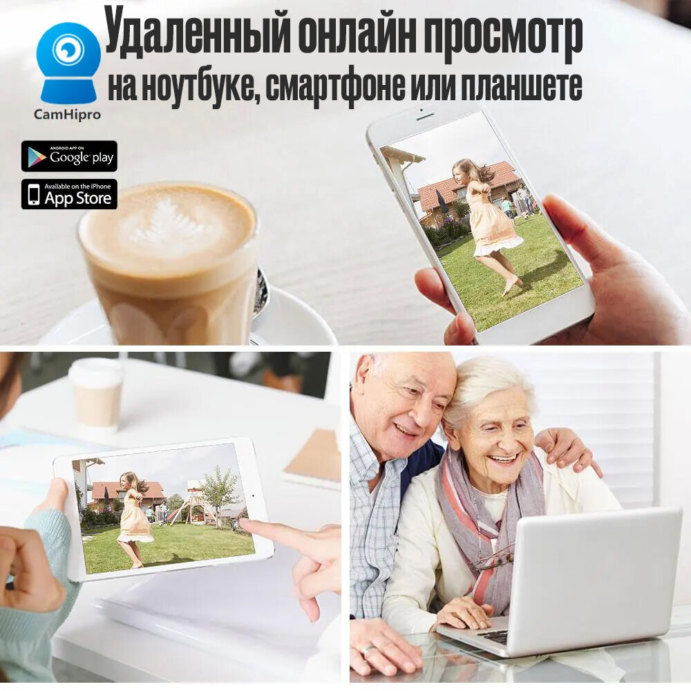 IP-камера видеонаблюдения Wi-Fi для дома с обзором 360 градусов белая