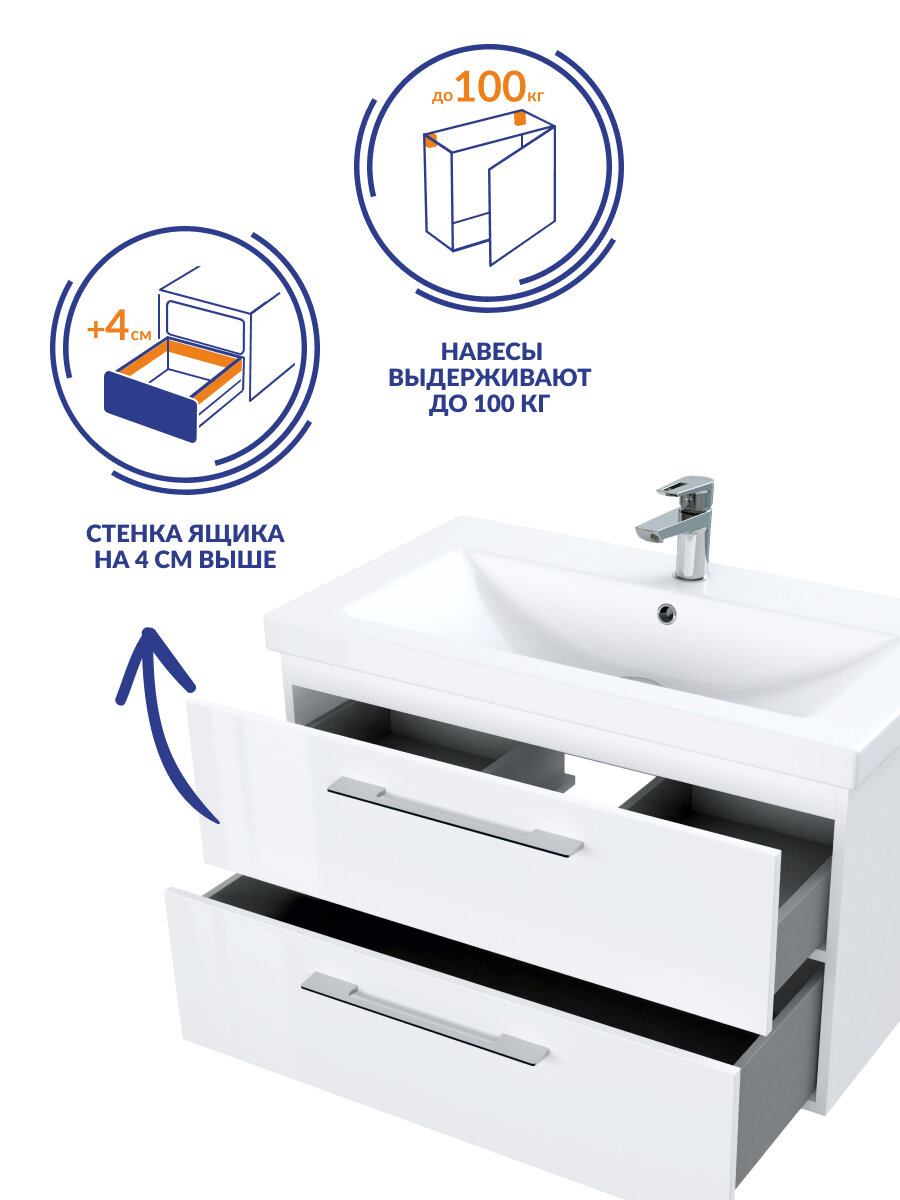 Тумба под раковину подвесная LARA 80 для COMO 80 белый