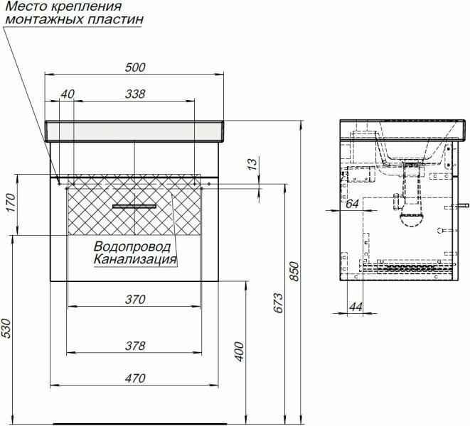Тумба с раковиной для ванной Кристалл 50 белая.