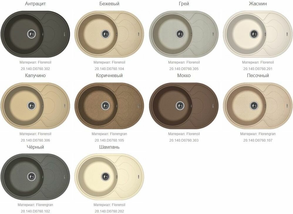 Florentina кухонная мойка родос 760 Жасмин 20.140.D0760.201