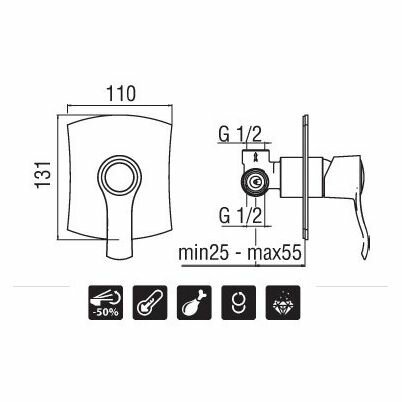 Смеситель для душа NOBILI SOFI SI98108CR (внешняя и скрытая часть)