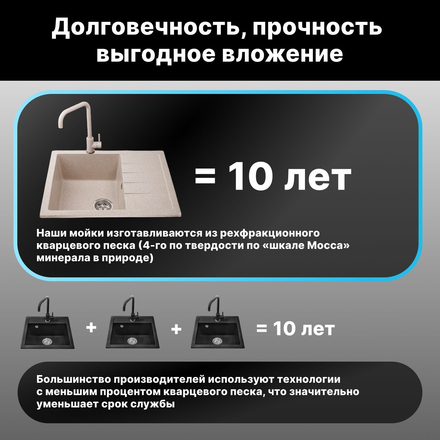Мойка для кухни из искусственного камня BENEFIT серебро 730х470 мм, AV Engineering