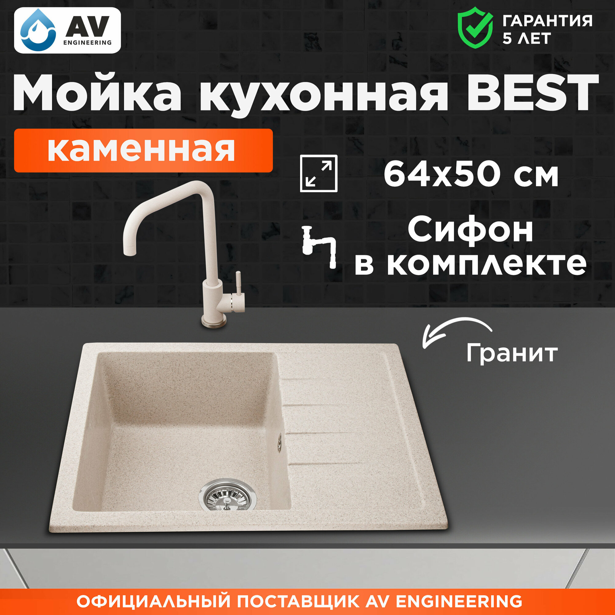 Купить Мойка кухонная из искусственного камня BEST гранит 640х500 mm, AV Engineering (AV650500BGTA)
