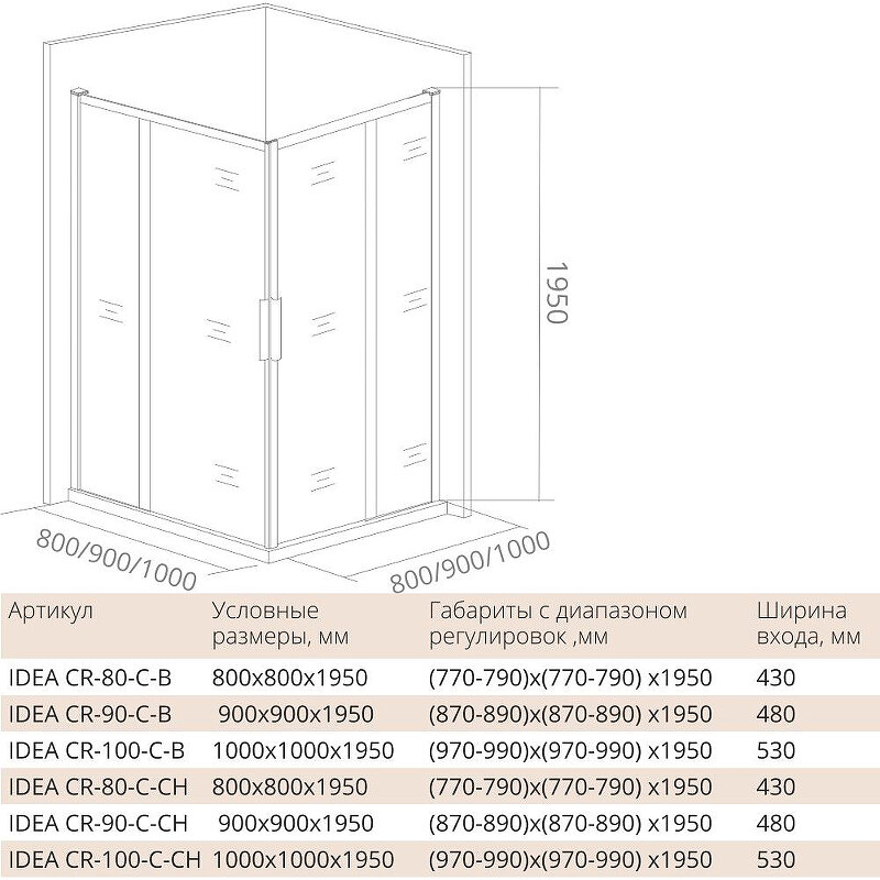 Душевой уголок Good Door Idea CR-100-C-CH 100x100, профиль хром ИД00017