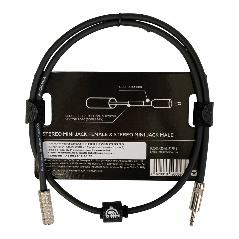 ROCKDALE JJ001-1M удлинитель для наушников, длина 1 м (разъёмы stereo mini jack female x stereo mini jack male)