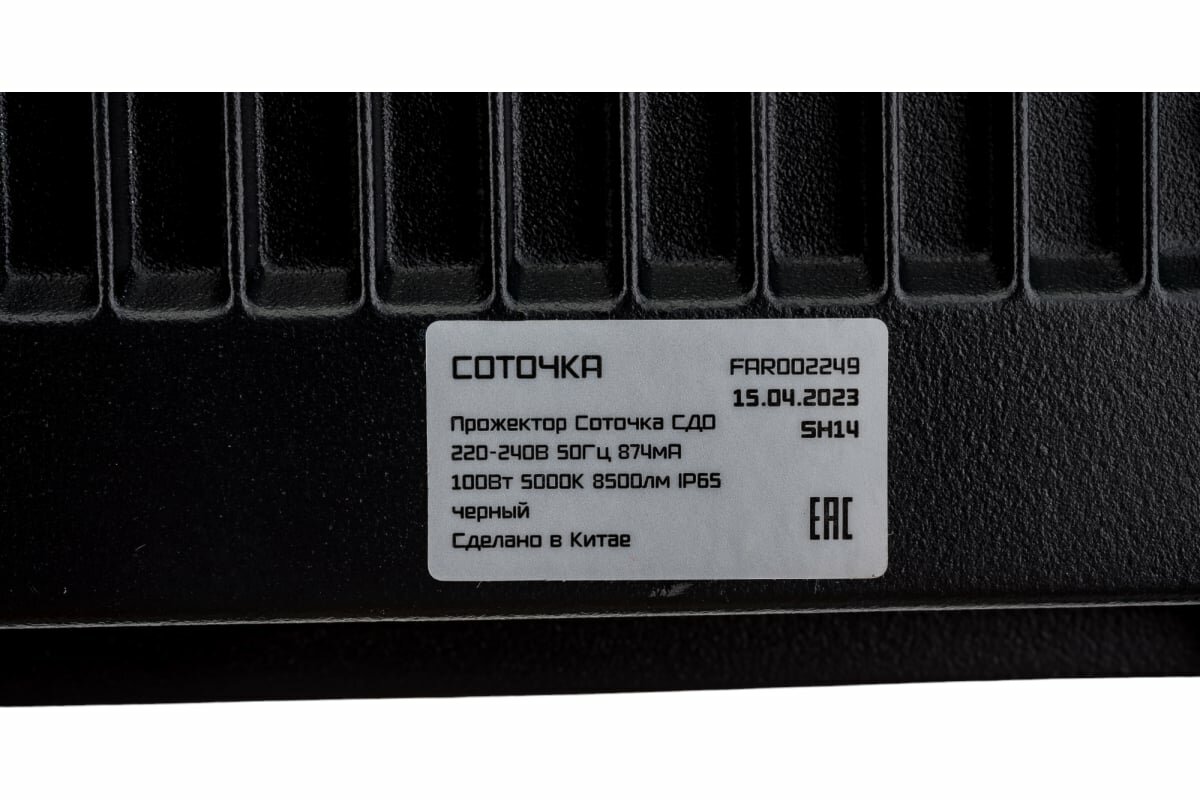 Прожектор светодиодный 100ВТ 5000K (нейтральный) IP65 черный Соточка Фарлайт
