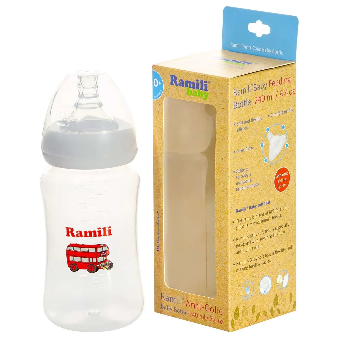 Противоколиковая бутылочка для кормления Ramili Baby (240 мл, 0+, слабый поток)