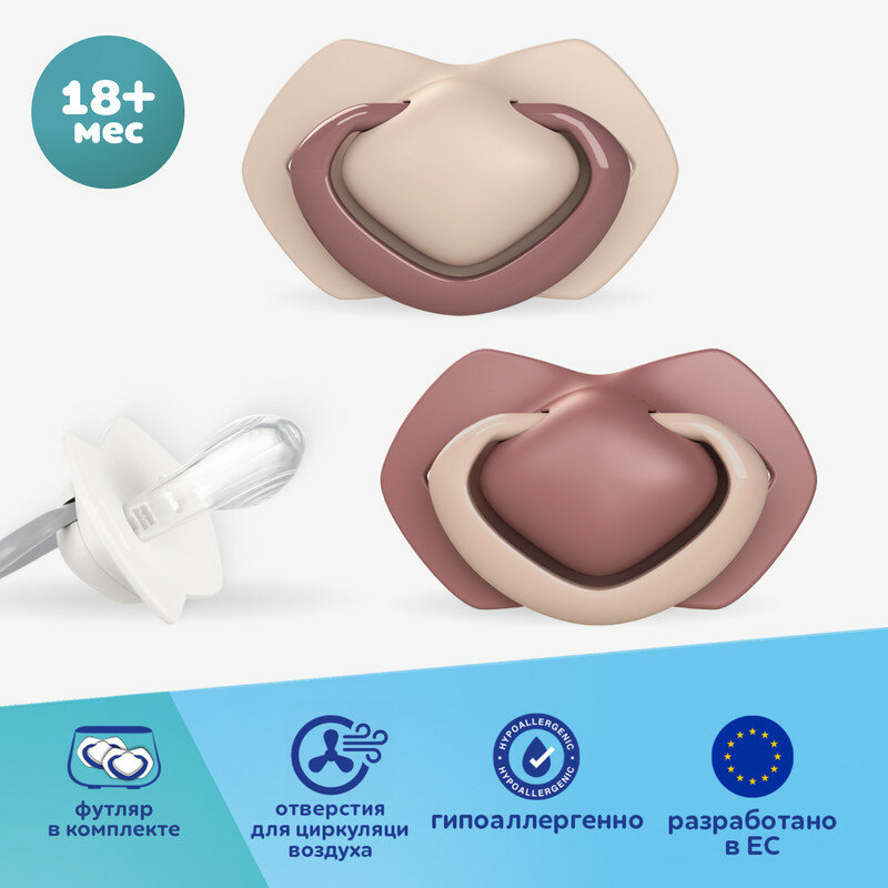 Пустышки Canpol babies Pure Love 18 мес+ 2шт с футляром, розовый/бордовый