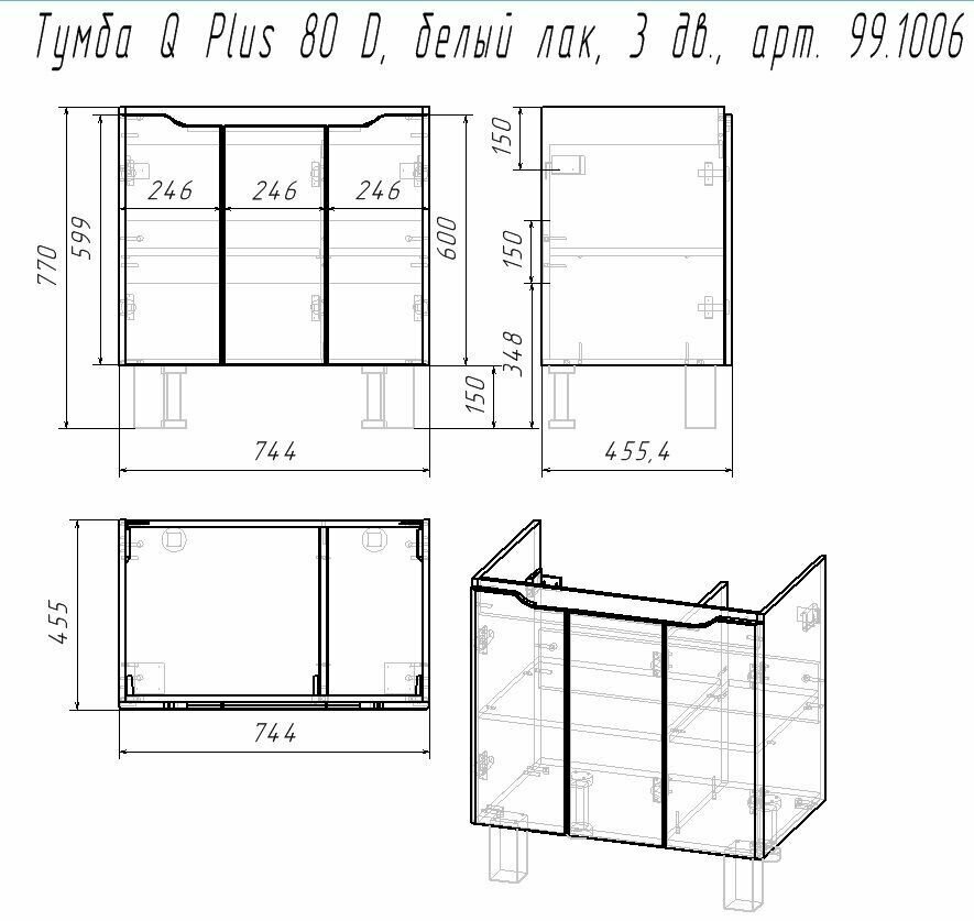 Тумба для комплекта Dreja Q Plus (D) 80 c опорами, белый глянец интересное: