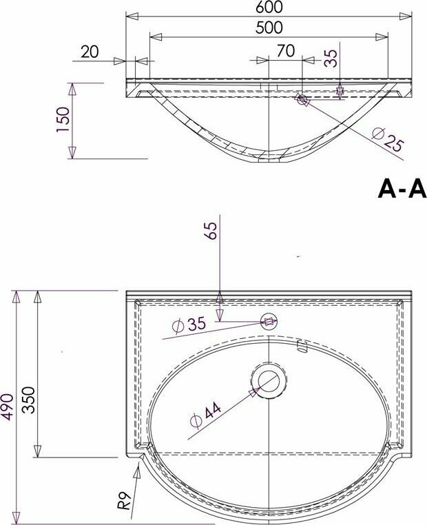 | Расположение отверстия под смеситель | в центре |