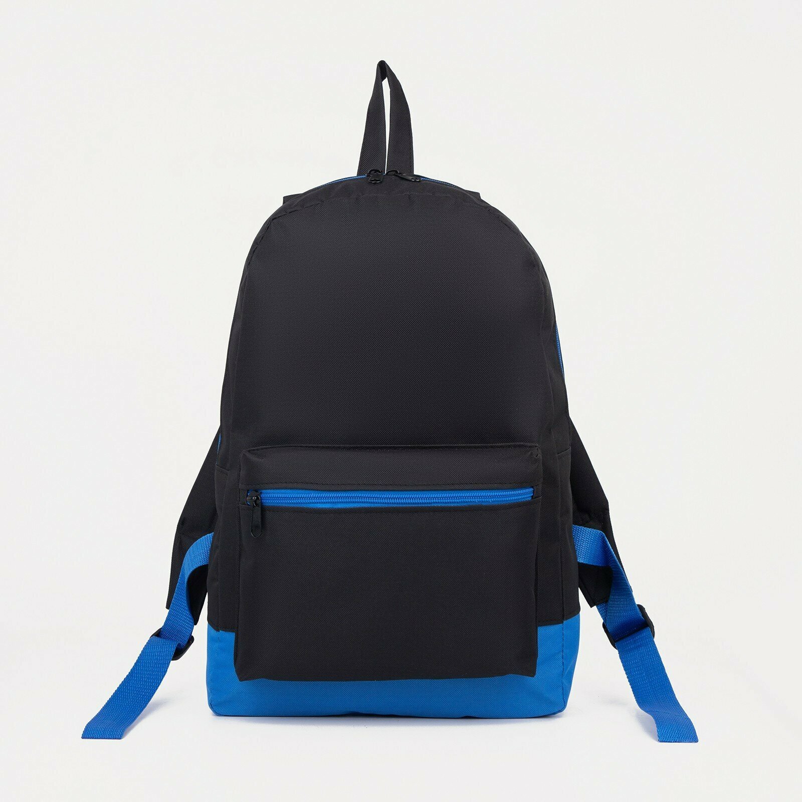 Купить Рюкзак молодёжный из текстиля на молнии, 1 карман, цвет чёрный/синий