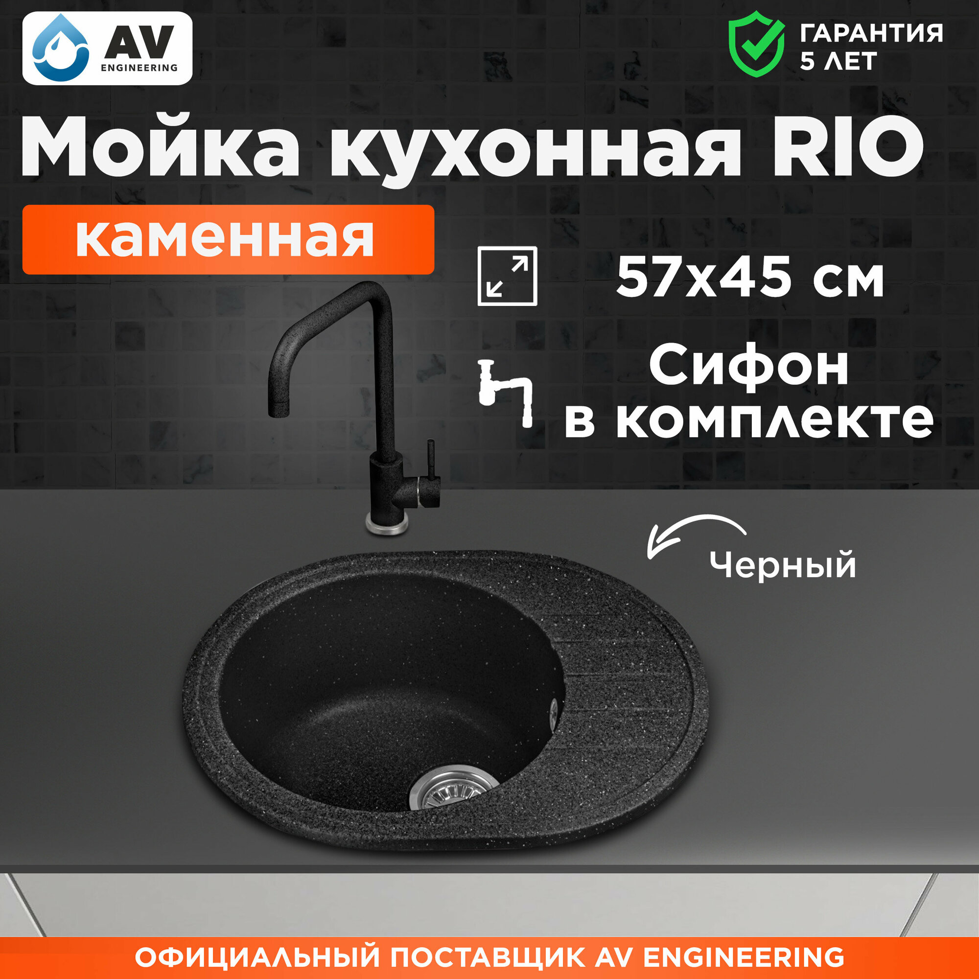Мойка кухонная из искусственного камня RIO черный, 570х450 mm, AV Engineering (AV580450RBKA)