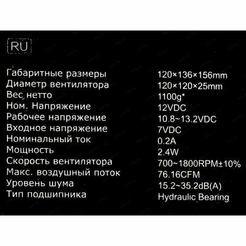 | Размеры кулера (ШхВxГ) | 120x156x136 мм |