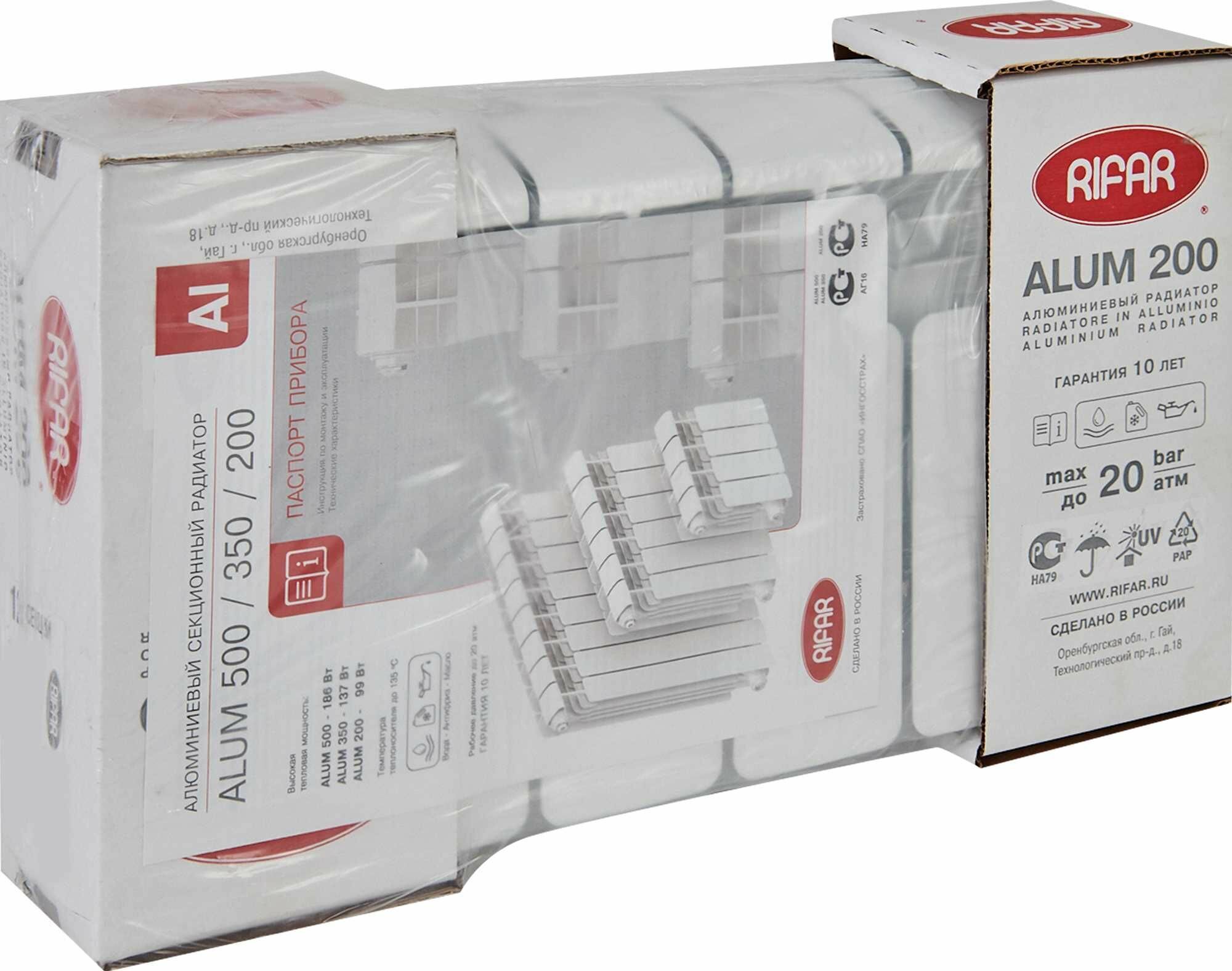 Радиатор Rifar Alum 200/90 алюминий 12 секций боковое подключение цвет белый интересное: