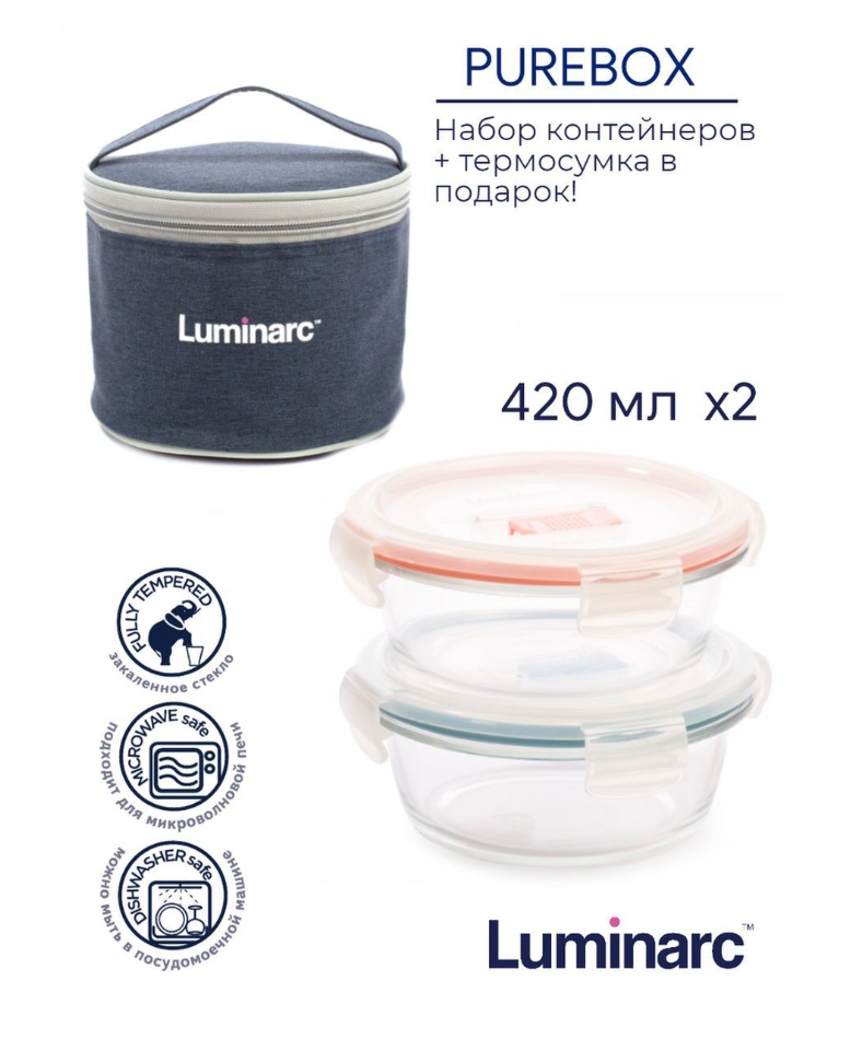 Купить Набор контейнеров Luminarc Purebox 420мл*2шт + термосумка х3шт